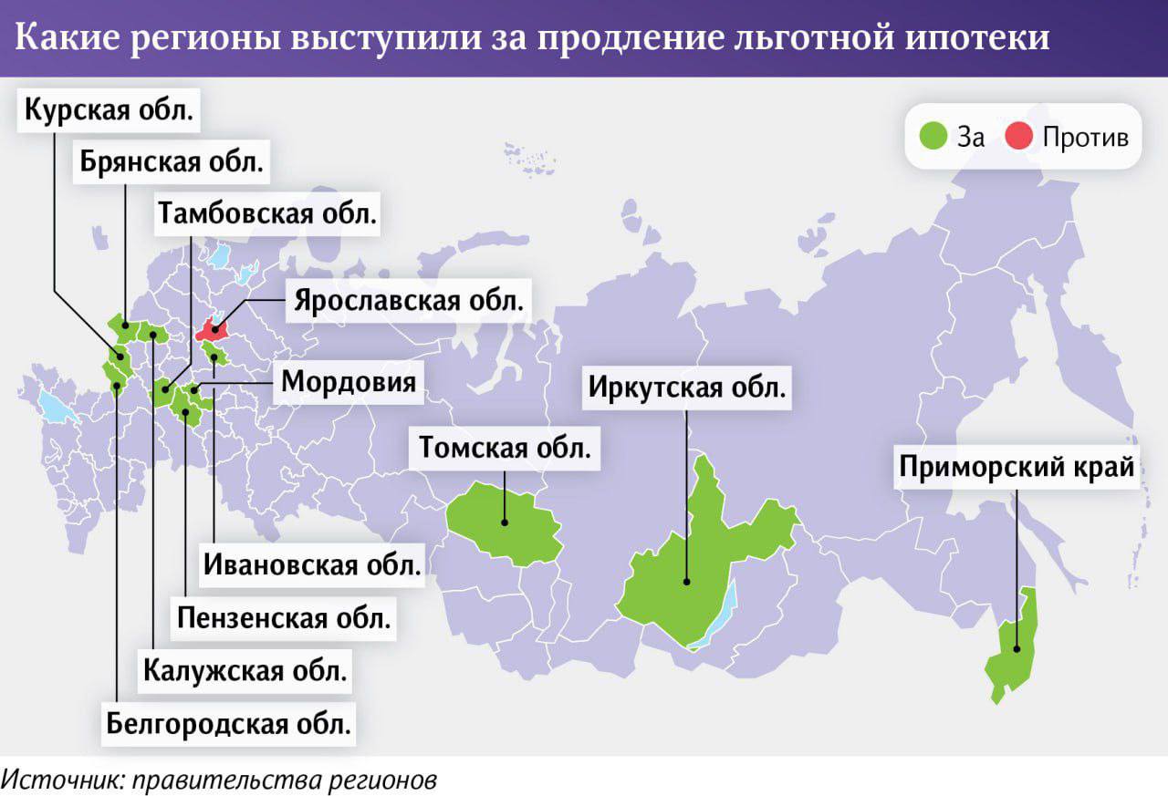 За продление программы выступили: Томская, Курская, Иркутская, Брянская, Калужская, Белгородская, Ивановская и Пензенская области, а также Республика Мордовия и Приморский край.