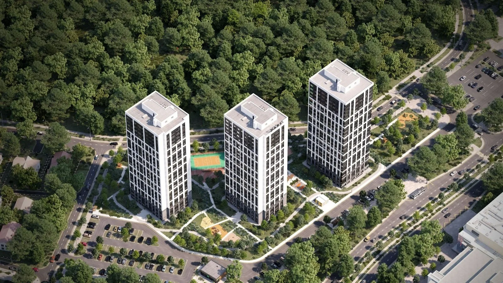 В основе проекта — концепция «15-минутного города». Все объекты инфраструктуры — магазины, досуговые центры, школы и детские сады — находятся в 15 минутах ходьбы от дома. В каждом дворе установлены детские и спортивные площадки из качественных экологичных материалов, соответствующие всем требованиям безопасности.