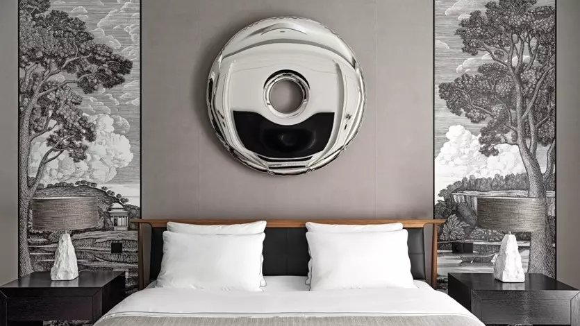 В хозяйской спальне все роскошно, пыльно розовые стены дополнены гобеленами и дизайнерской сферой, здесь классика танцует с современным искусством.