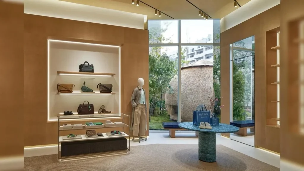 Бутик расположен в районе Даиканьяма — одной из самых эстетически выверенных и архитектурно насыщенных зон японской столицы. Здесь сосредоточены дизайнерские пространства, галереи и бутики, где особое внимание уделяется не только продукту, но и форме его представления.