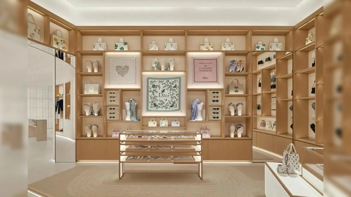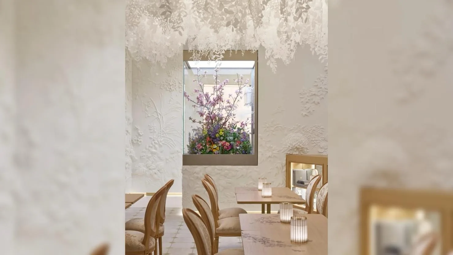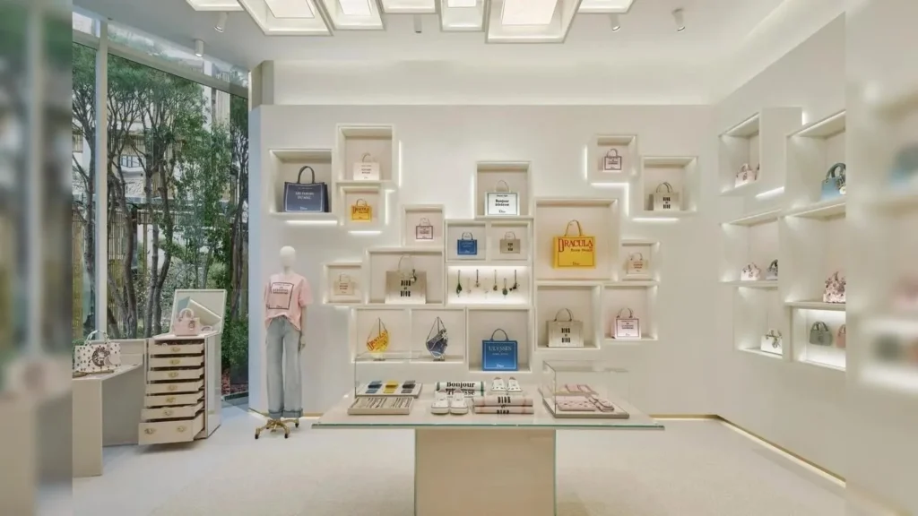 Бутик включает не только торговые площади, но и дополнительные сервисы: зона персонализации продукции, выставочные пространства, экскурсионные маршруты, кафе. Особого внимания заслуживает Dior Café, где меню разработано Анн-Софи Пик. Это усиливает концепцию пространства как культурного объекта.
