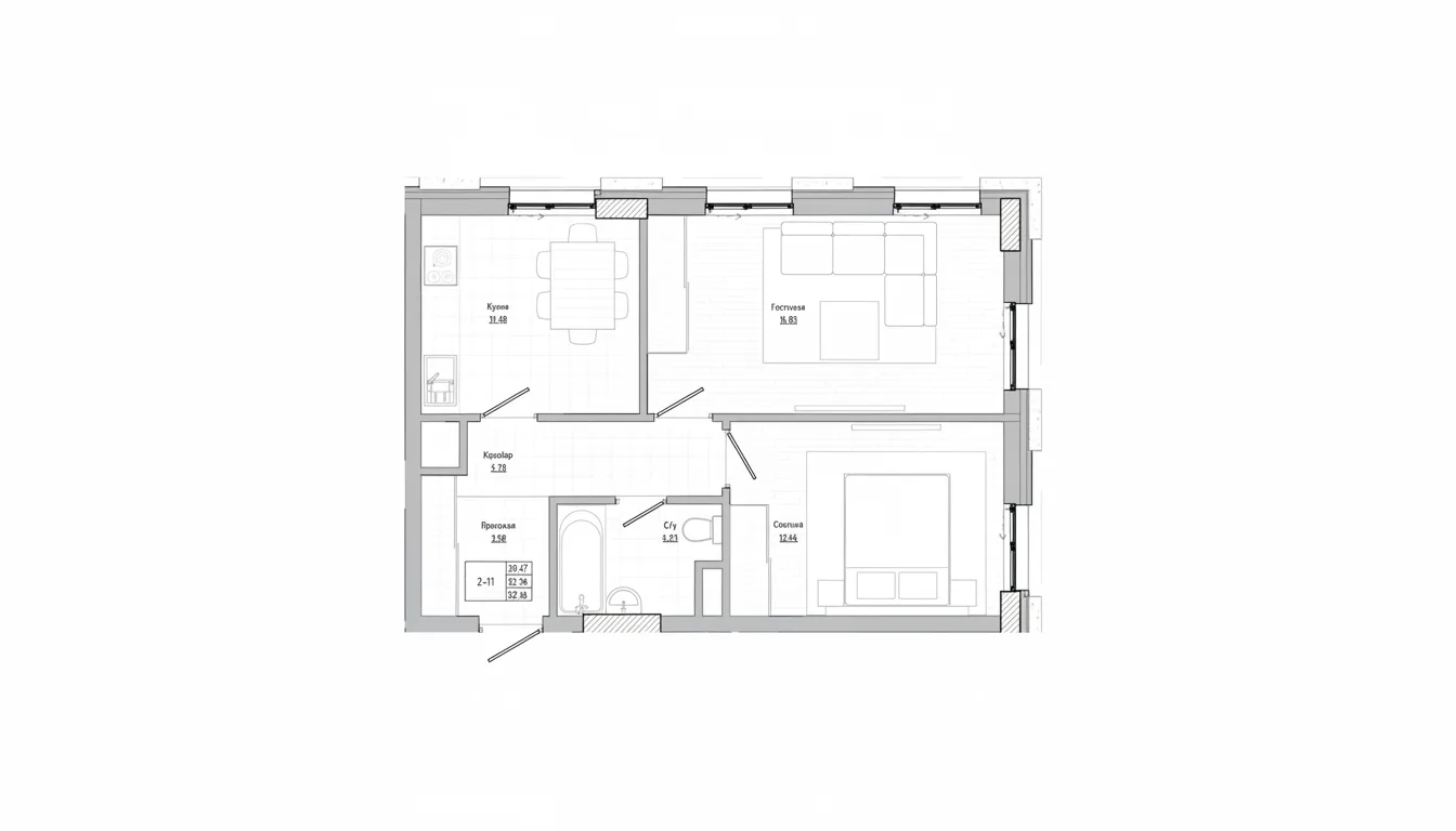 Формально здесь тоже можно купить двухкомнатную квартиру в новостройке с чистовой отделкой. Однако стоит обратить внимание на метраж: 32 квадратных метра на две комнаты означают очень компактное пространство.