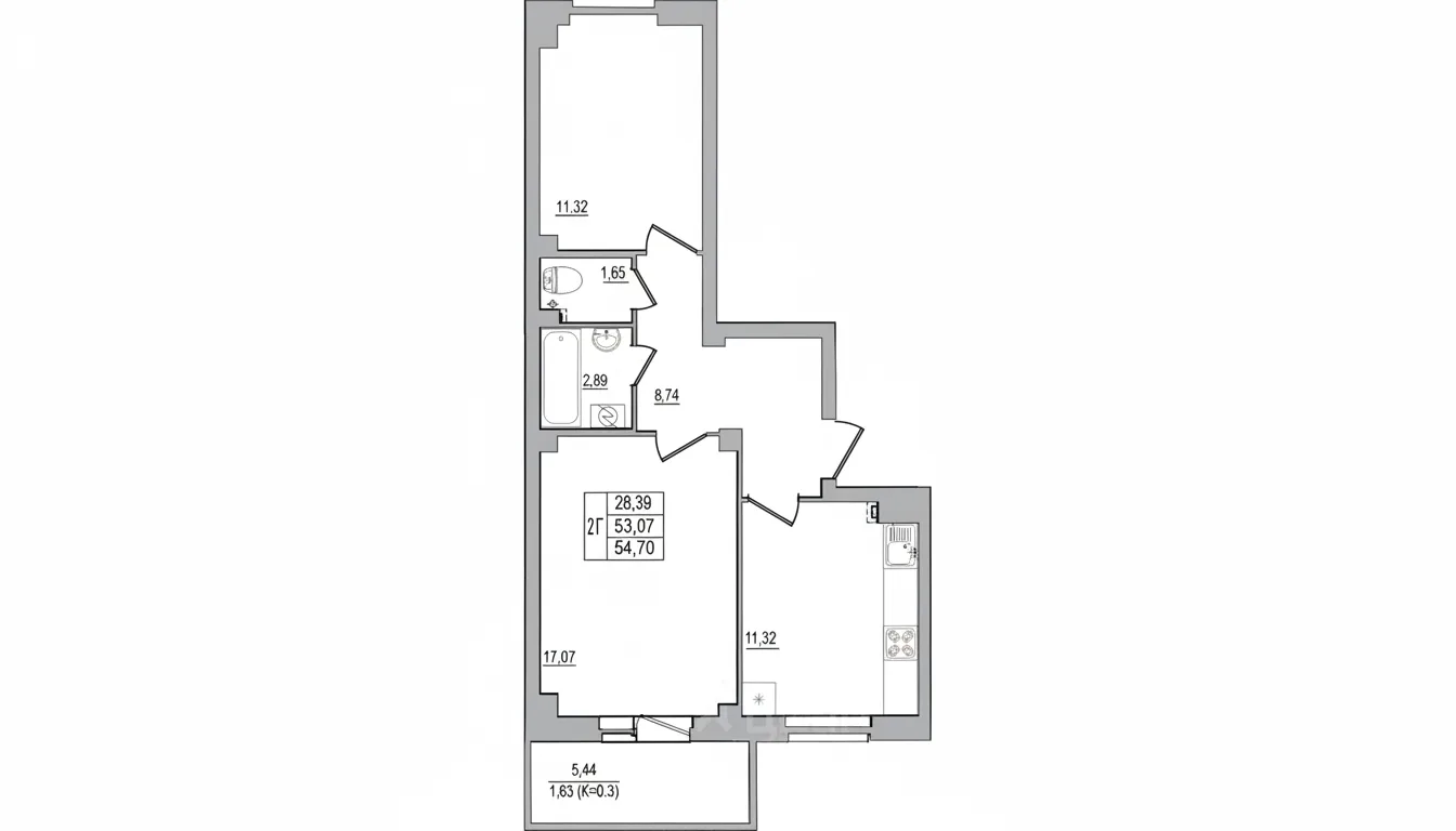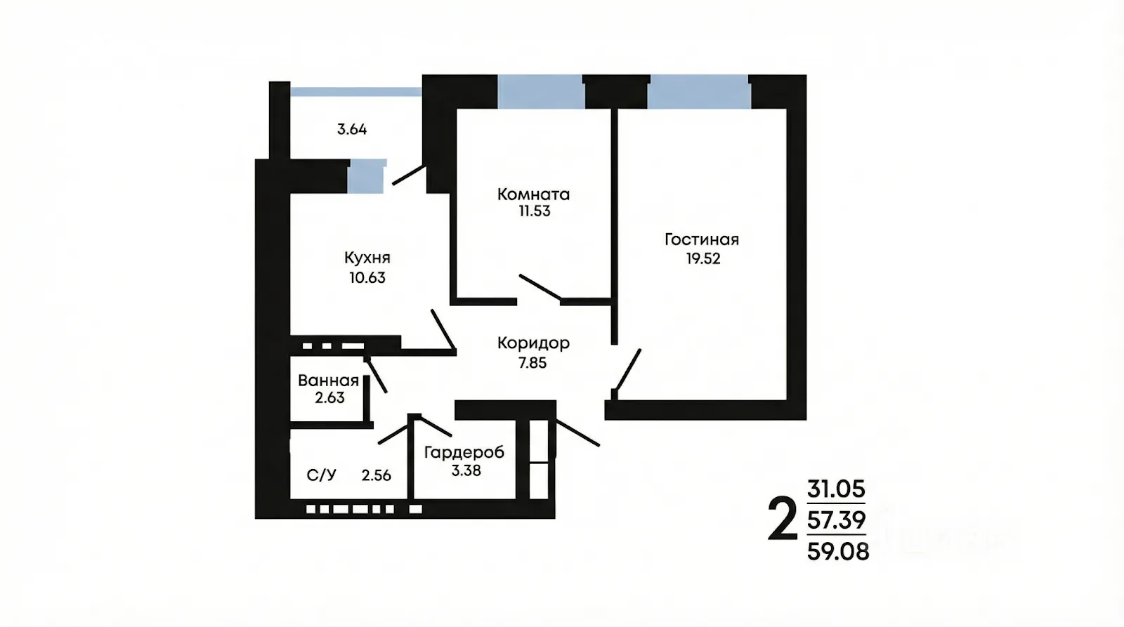 | Площадь | 57,3 м² (жилая 31,1 м²) |