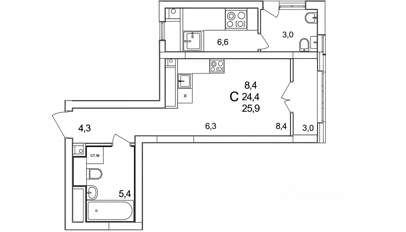 | Площадь | 25,9 м² (жилая 8,4 м²) |