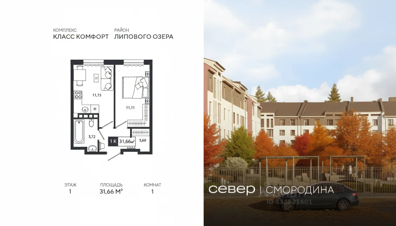 | Площадь | 31,66 м² (жилая 11,11 м²) |
