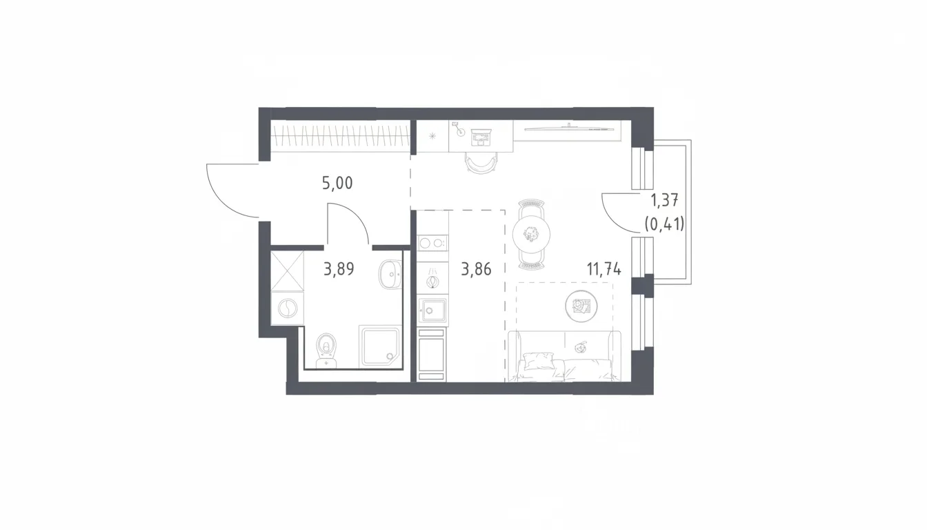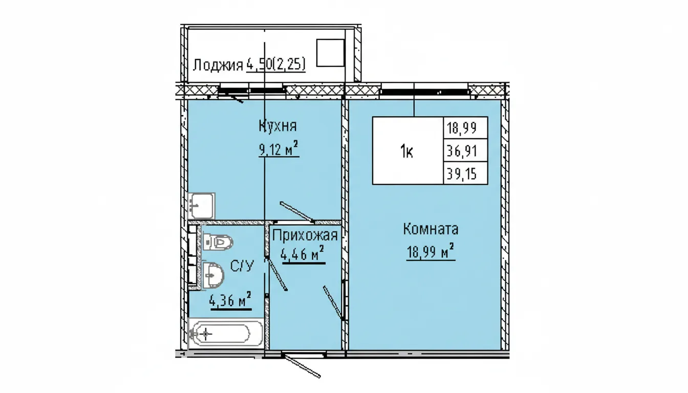 | Площадь | 39,15 м² (жилая 19 м²) |