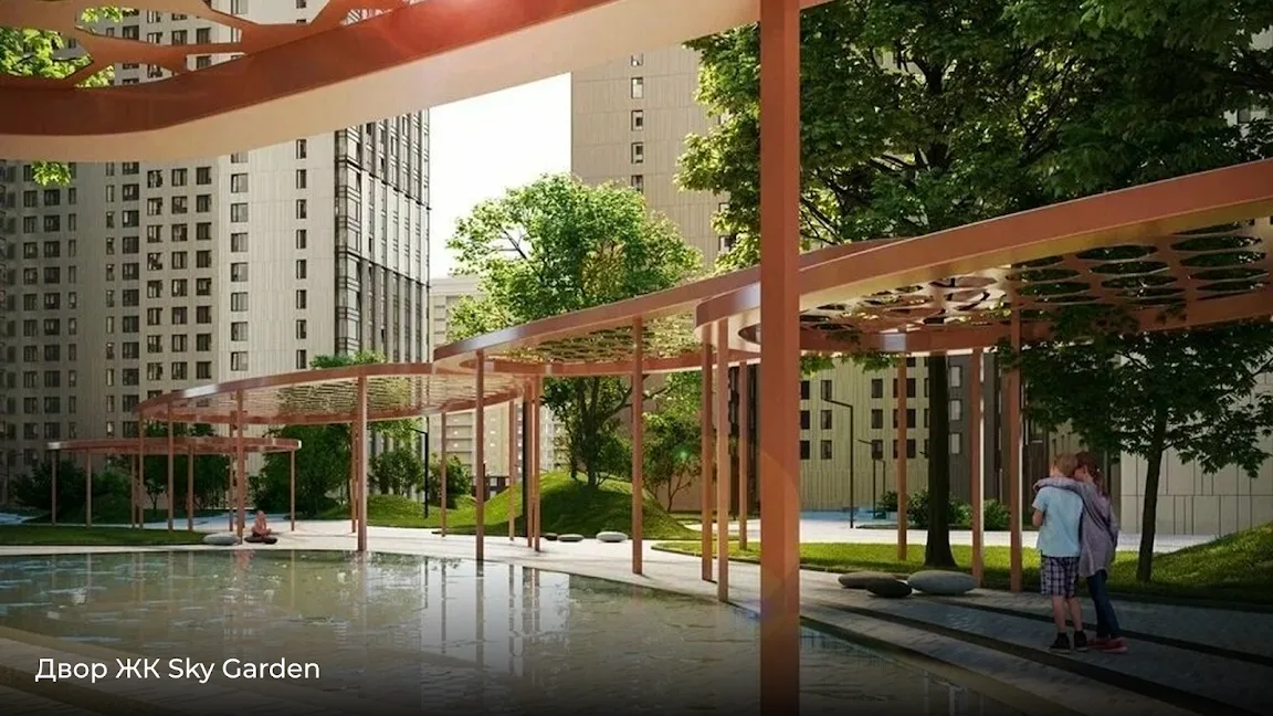 Например, в ЖК Sky Garden, который расположен в столичном районе Покровское-Стрешнево, зеленые зоны и общественные пространства двора-парка похожи на бионический рисунок или острова в дельте реки, где вместо тихих вод — светлая брусчатка прогулочных дорожек. Подчиняясь их плавным изгибам, будущие жители смогут гулять и не повторяться в маршрутах. Сценарии времяпрепровождения продуманы для разных возрастов и темпераментов: застройщик предусмотрел сразу три современные игровые площадки, скалодром, зоны для йоги, воркаут-площадки и не только.