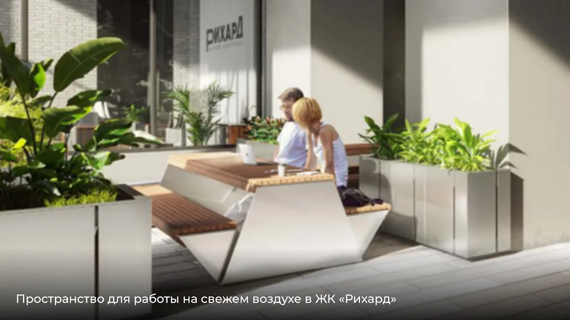 Места для работы на улице ГК ФСК предусматривает во многих своих ЖК. Например, в комплексе бизнес-класса «Рихард» в Хорошевском районе. Для тех, кому нужно посидеть за ноутбуком, здесь оборудована зона с розетками на 220 В и USB-разъемами для зарядки гаджетов. Вообще, внутренний двор ЖК «Рихард» — это отдельный мир, в котором даже работа превращается в отдых. Это полностью изолированная от городской суеты территория, где для детей созданы интересные игровые зоны с использованием естественного рельефа местности, а для отдыха взрослых — тихие уголки в ландшафтном парке, уединенные лежаки в сенсорном саду и подвесные кресла. Для шумных игр и встреч с друзьями здесь, как и в других своих проектах, застройщик создал отдельное пространство: с внешней стороны дома расположился сквер со спортивными и игровыми площадками для детей разного возраста, где каждый ребенок найдет себе развлечение, а детский смех не помешает тем, кто проводит конф-колл в коворкинге на свежем воздухе.