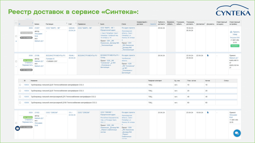 Все данные о принятых материалах, включая документы по приемке, отразятся в Реестре доставок.