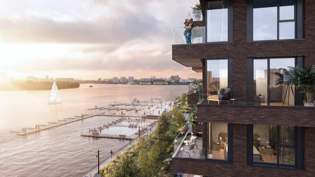 Еще один жилой комплекс с видами на Москву-реку. Он возводится в столичном районе Печатники, в акватории Южного речного порта. Это проект комплексного развития территории: некогда индустриальный район обновляется и становится новой точкой притяжения. Помимо жилых корпусов с разнообразными планировками (есть в том числе и террасы), здесь появятся благоустроенная набережная, открытый бассейн, гавань для катеров и яхт, детский сад.
