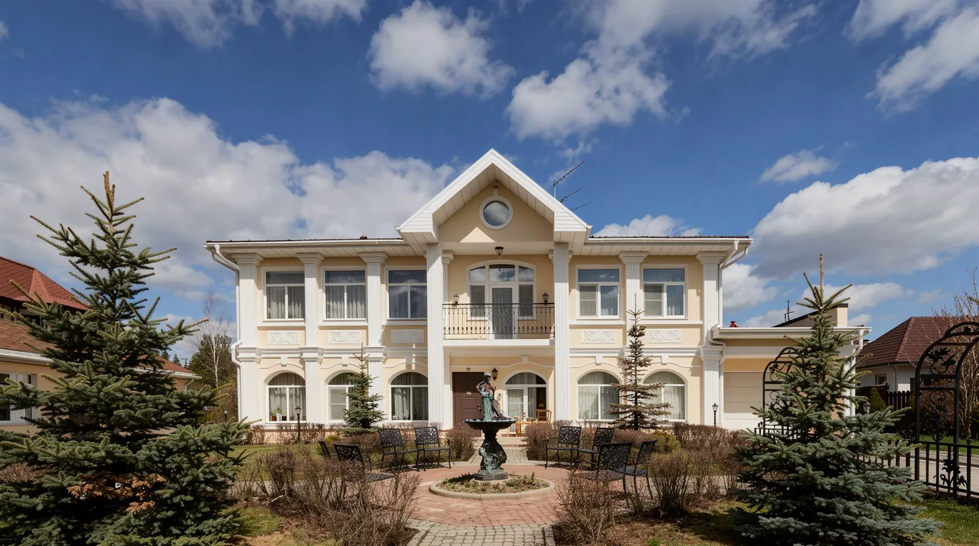 С точки зрения архитектуры и эксплуатации объект представляет собой интересный пример загородной резиденции с развитой инфраструктурой. Четырехэтажный дом, дополнительные постройки и участок позволяют рассматривать его как универсальную площадку для различных форм использования — от жилого до общественного. Однако любое изменение функционала потребует дополнительных вложений и адаптации пространства.