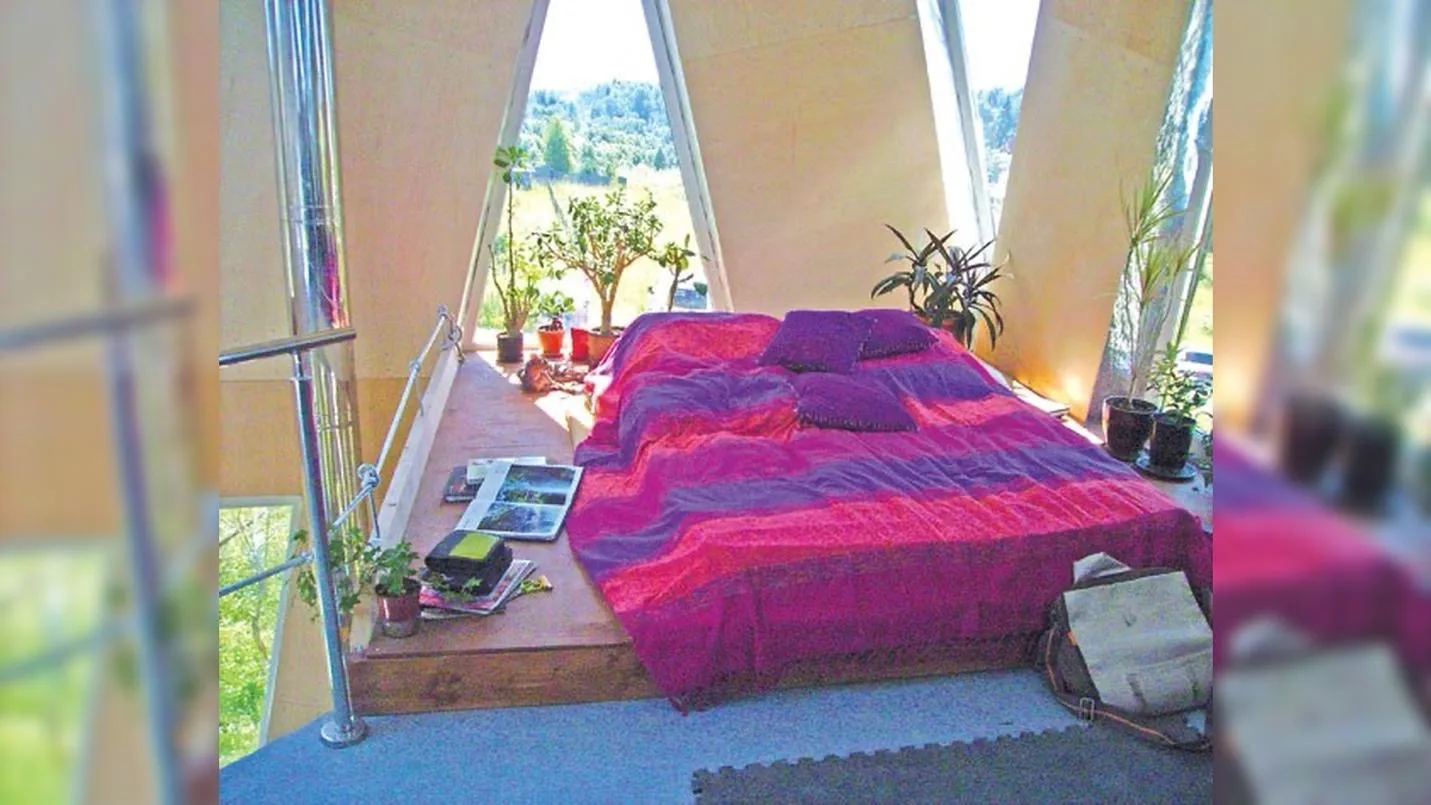 В основе всей конструкции лежит принцип треугольников — одной из самых устойчивых геометрических фигур. Практически весь дом «прошит» арматурой, что обеспечивает дополнительную жёсткость и устойчивость к внешним нагрузкам. Такая структура позволяет не только создавать необычные формы, но и гарантирует долговечность здания. Даже при сильных ветрах или температурных перепадах конструкция сохраняет стабильность.