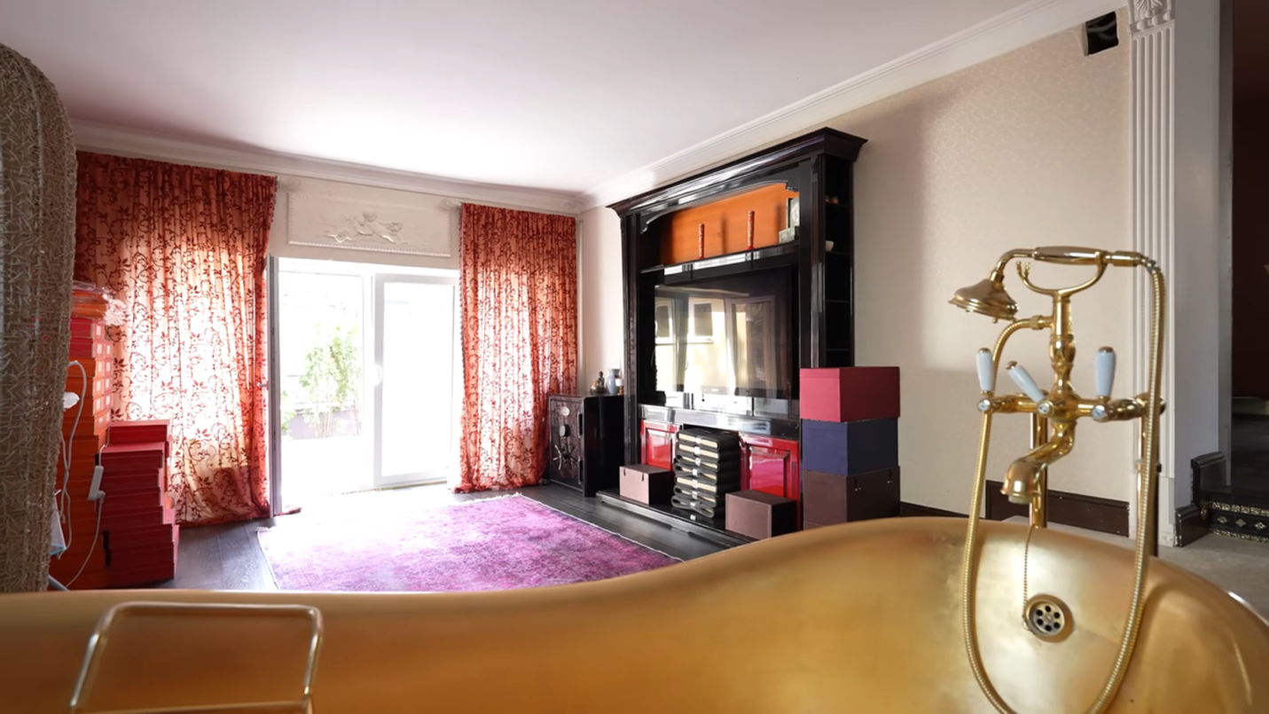 Именно этот элемент стал главным триггером для интернет-дискуссий. Золотая ванна, установленная посреди комнаты, мгновенно превратилась в мем и символ «показной роскоши». Для одних — это эпатаж, для других — безвкусица, для третьих — наглядная иллюстрация внутреннего конфликта между стремлением к уникальности и отсутствием цельной эстетической концепции.