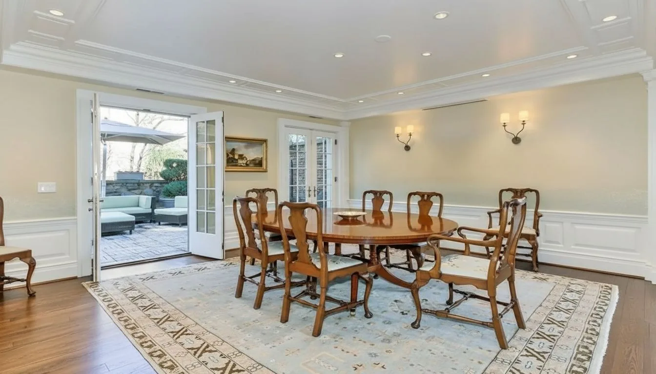 Общая площадь дома составляет около 484 квадратных метров. Внутри — пять спален и шесть ванных комнат, что по меркам исторического Джорджтауна считается редкой роскошью. Планировка выстроена по классической вертикальной схеме: общественные пространства расположены на первом уровне, жилые — выше.