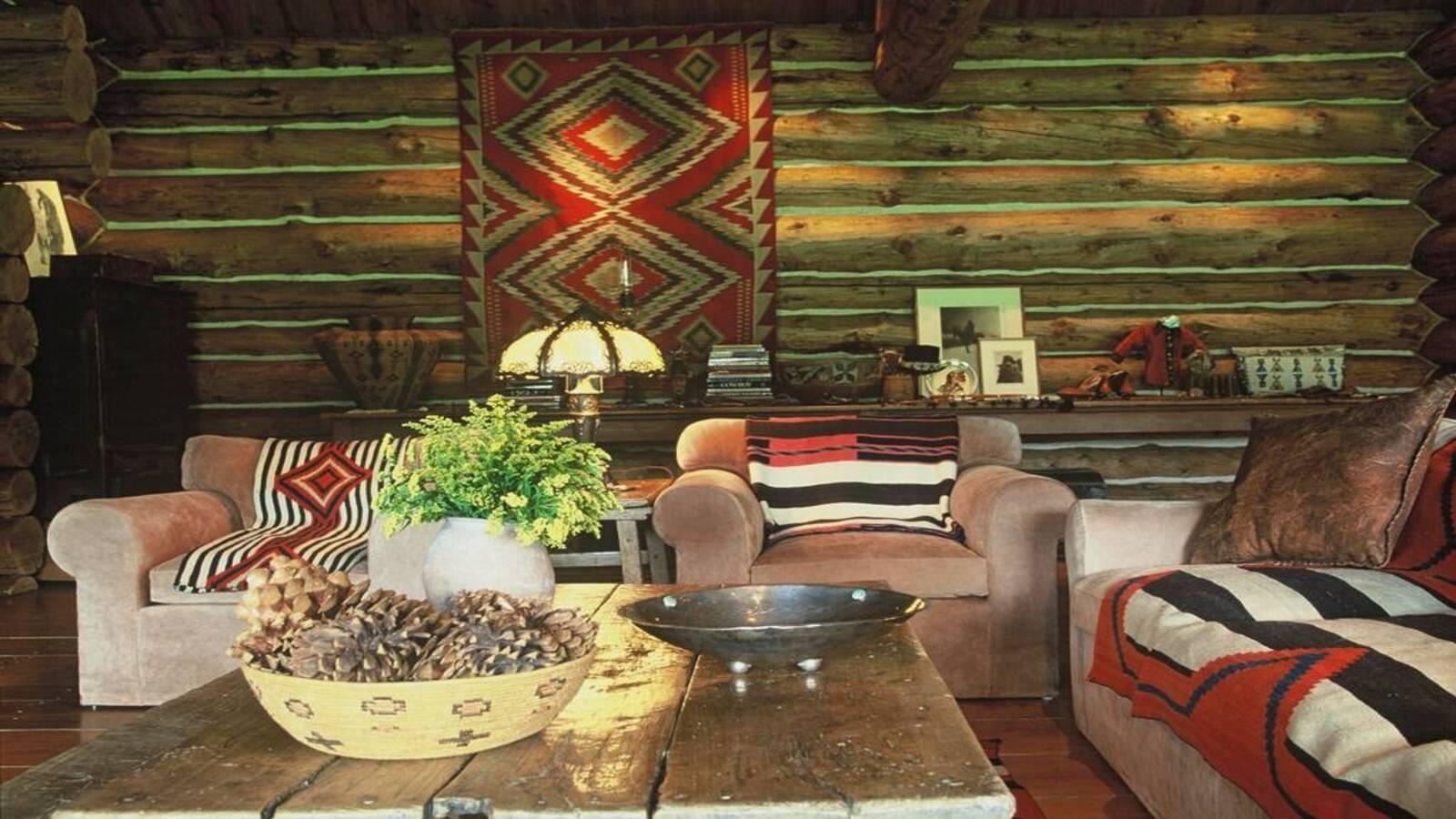 В интерьерах — ещё больше фактур и этники. Ковры ручной работы, созданные мастерами племени навахо, массивные камины из грубого камня, люстры из оленьих и лосиных рогов. Каждая деталь здесь оправдана климатом и ландшафтом.