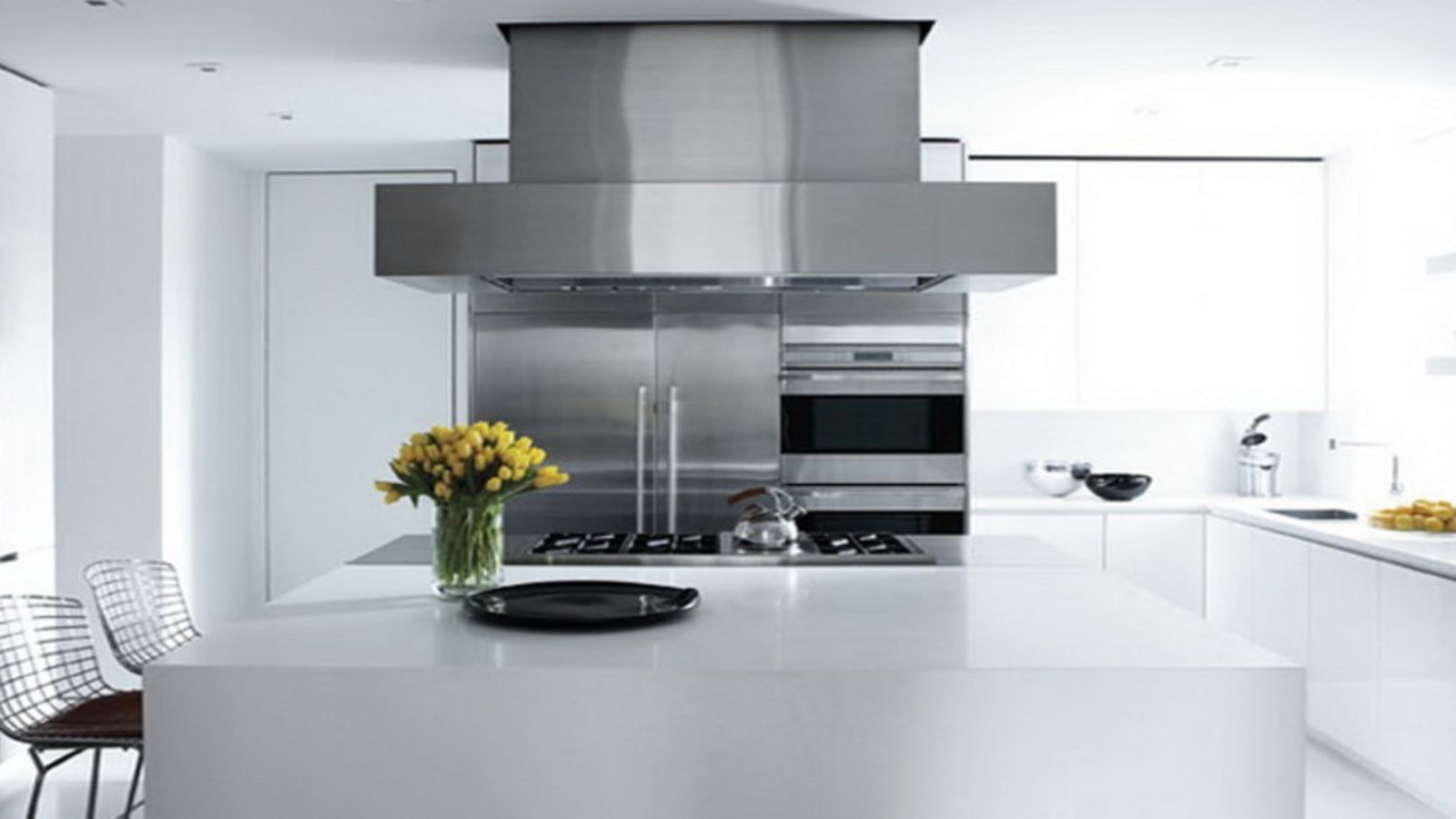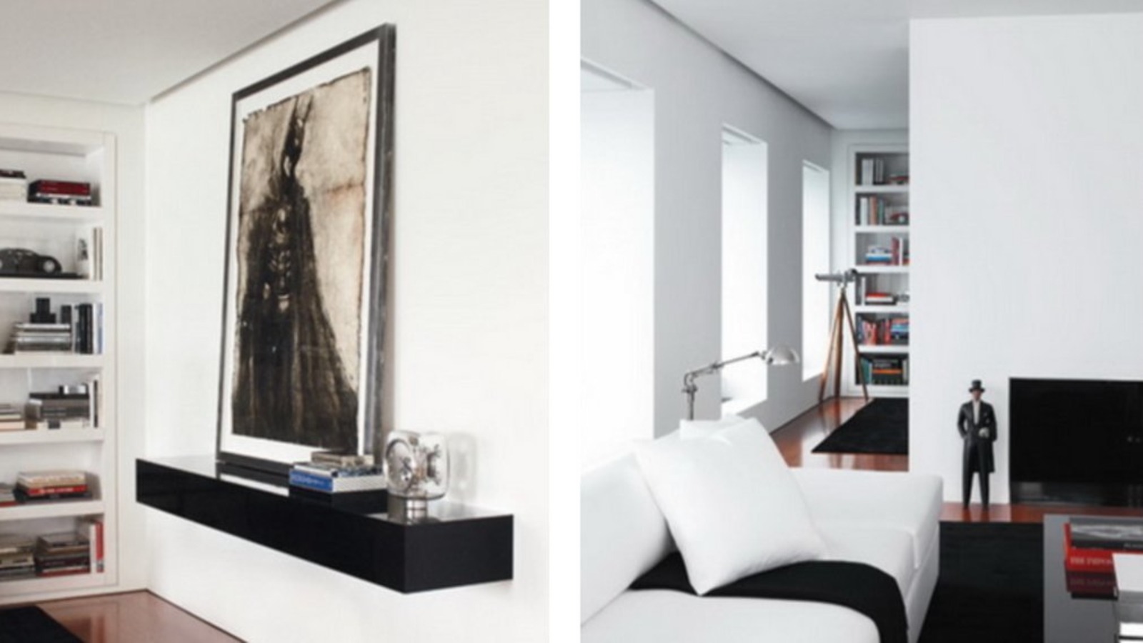Здесь он сознательно отказался от перегруженного декора. Интерьер выдержан в чёрно-белой гамме, с активным использованием металла и стекла. Пространство кажется почти аскетичным, но именно эта сдержанность усиливает ощущение высоты и воздуха.