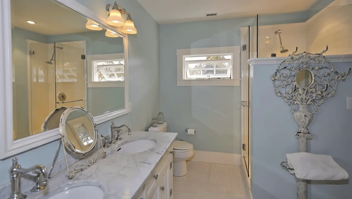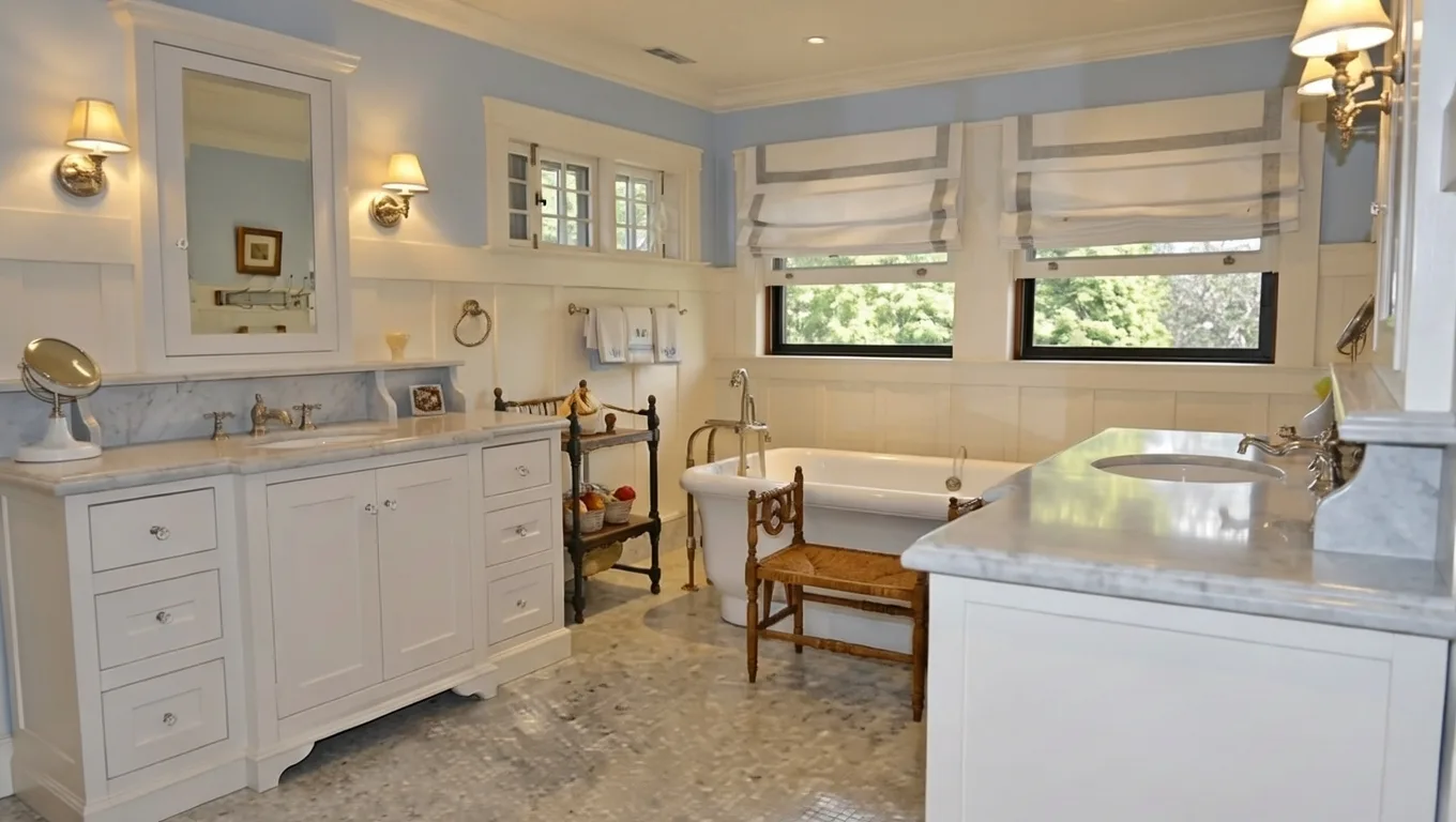 Особенное внимание обращают на себя ванные комнаты в доме.
