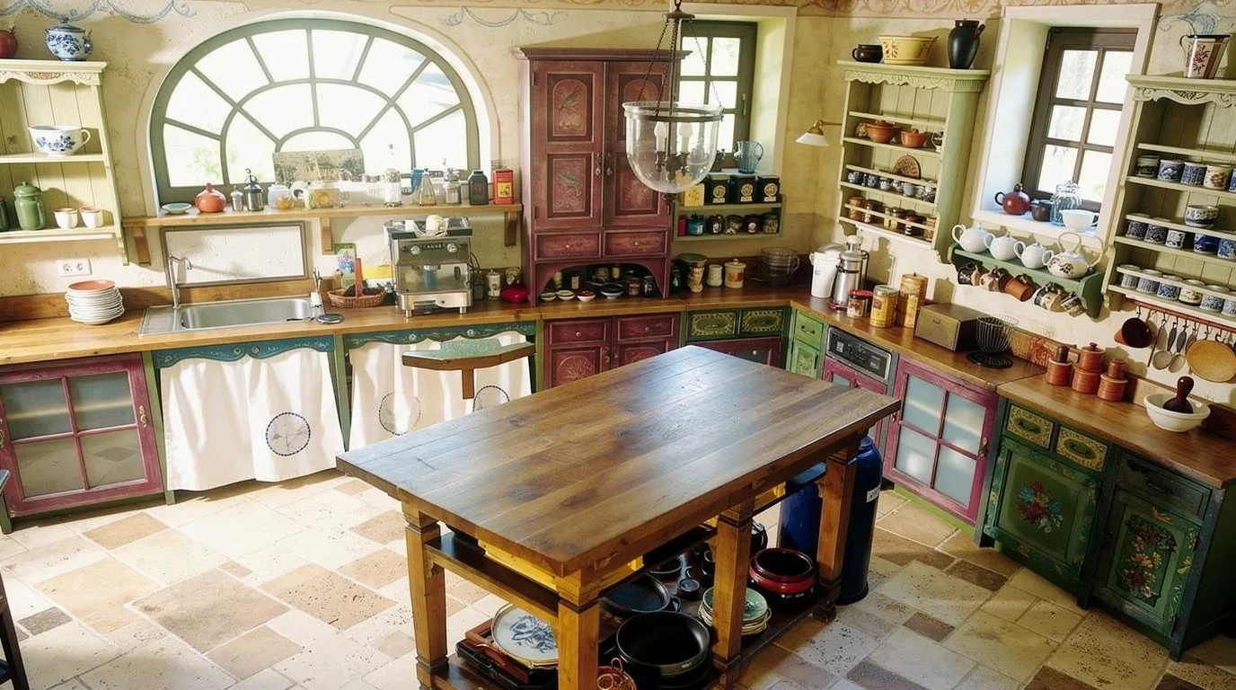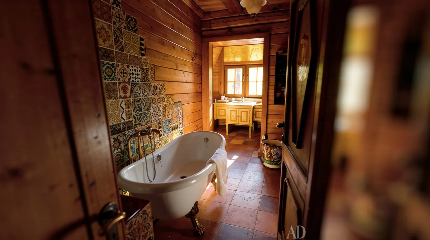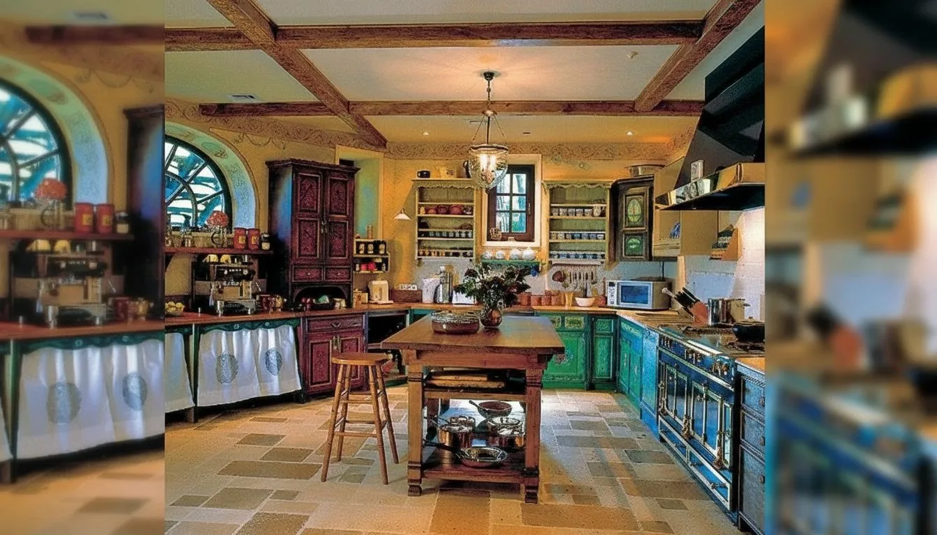 Европейские влияния также заметны. Впечатления от итальянских домов, особенно флорентийских палаццо, оказали серьезное влияние на восприятие пространства. Там Кончаловский увидел, как предметы искусства могут существовать в интерьере не как музейные экспонаты, а как часть повседневной жизни. В доме присутствуют и более экзотические элементы. Китайская расписная мебель органично вписана в общую композицию, а марокканская плитка в ванной создает яркий акцент, напоминающий текстильный орнамент. Такие детали добавляют пространству глубины и визуального разнообразия. Центральным местом в доме остаётся кухня. Несмотря на наличие отдельной столовой, именно здесь собирается вся семья. Это пространство было создано с учётом пожеланий Юлии Высоцкой. В результате кухня стала не только функциональной зоной, но и своего рода символом дома.