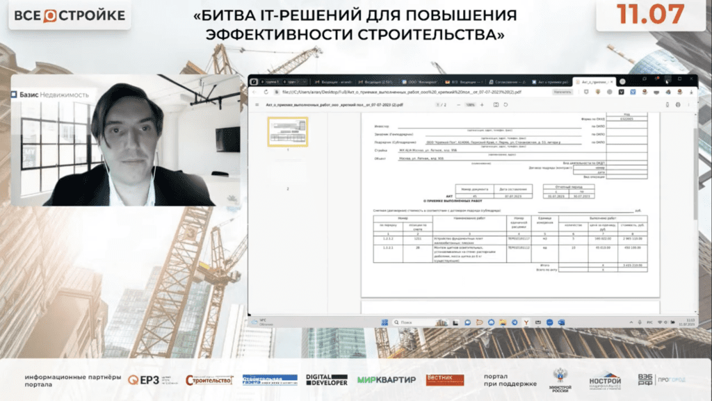 2 место присуждено решению «Базис. Управление строительством», презентованное Артёмом Глухих — основателем и CEO компании «Базис Недвижимость».