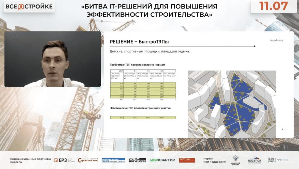 Артём Тохтуев — директор по цифровым технологиям ИнПАД: «Результат внедрения решения – несколько вариантов застройки территории с учётом действующих нормативных баз, сокращение сроков строительства, получение технико-экономических показателей».