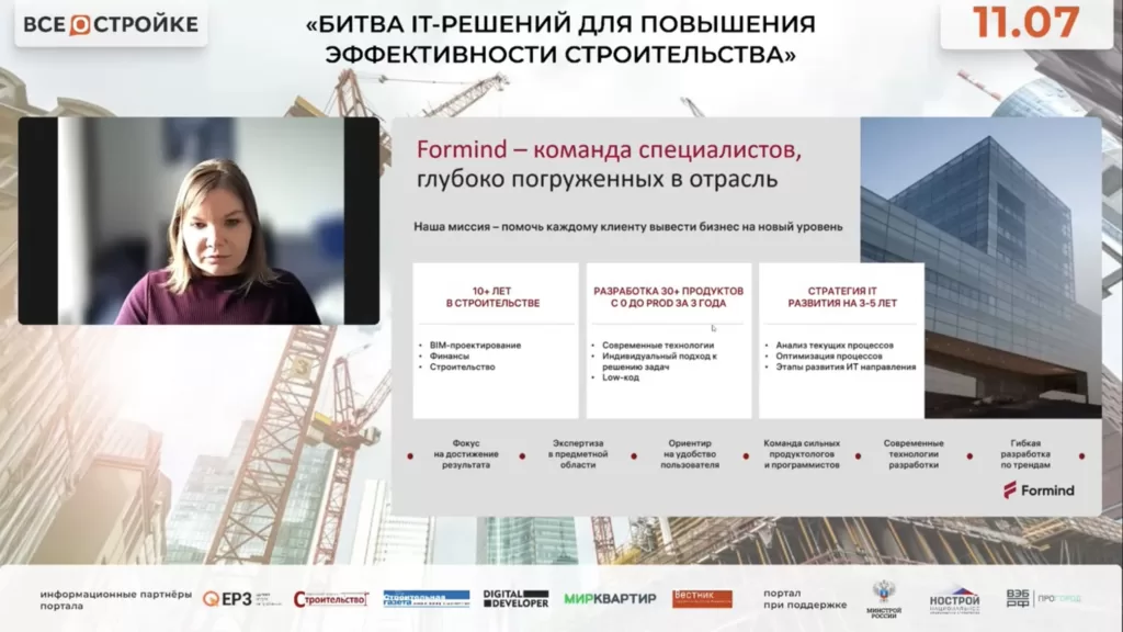 Наталия Торлопова — директор по продуктам, Formind представила единую платформу для эффективного управления строительными процессами на всех этапах девелоперского цикла.
