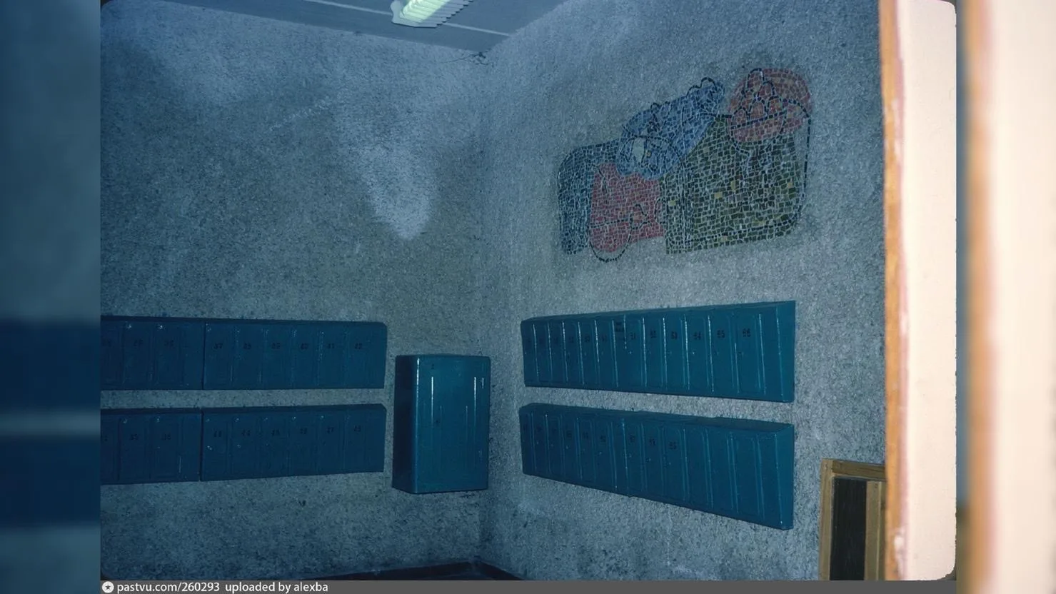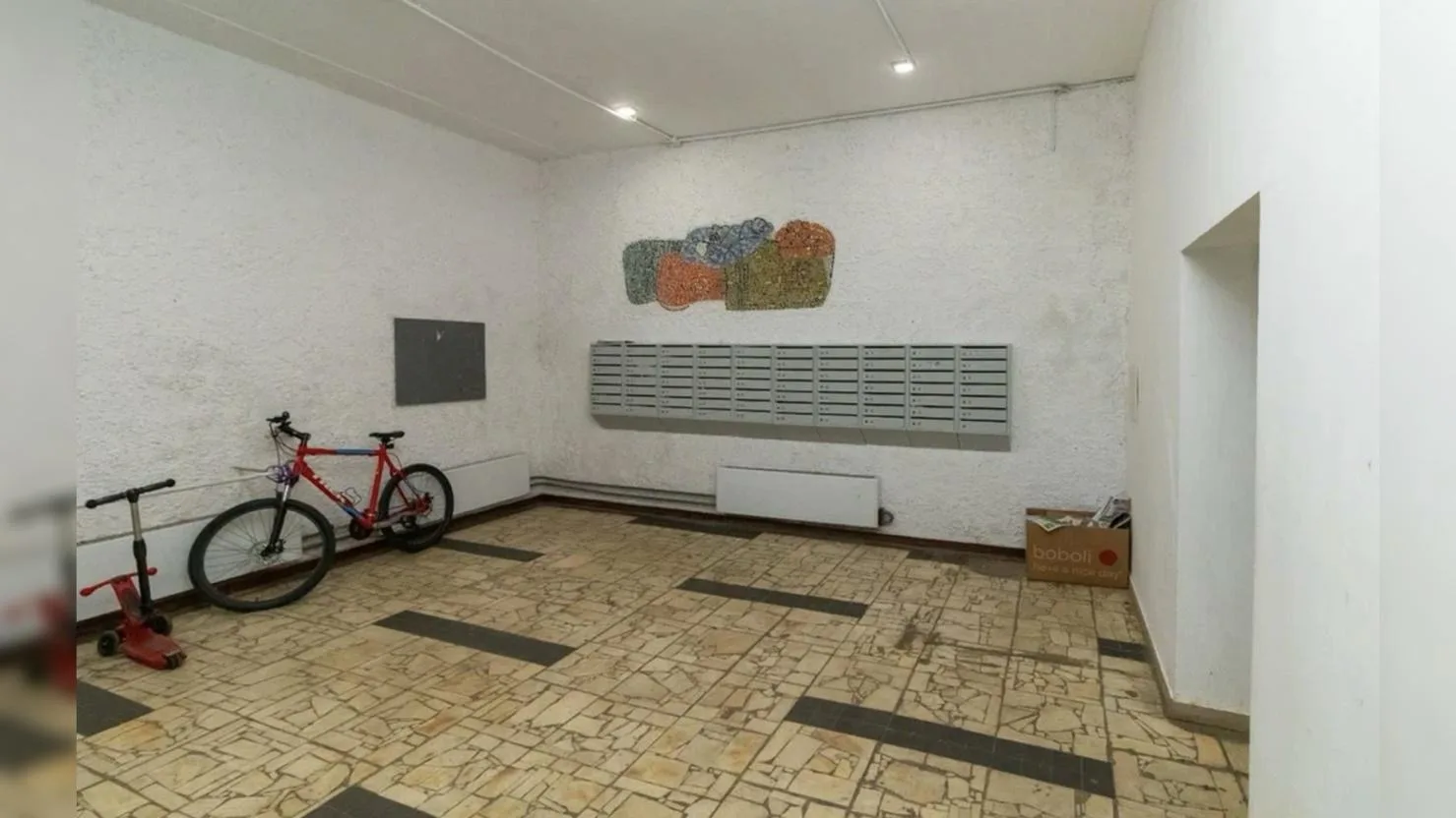 В доме всего один подъезд и 69 квартир. Интерьеры входной группы выполнены без излишней декоративности, но с интересными решениями. Например, стены в зоне почтовых ящиков отделаны фактурной штукатуркой, а пространство дополнено мозаичным панно. Далее располагается лестнично-лифтовой узел с двумя пассажирскими лифтами и мусоропроводом — обязательным элементом для домов той эпохи.
