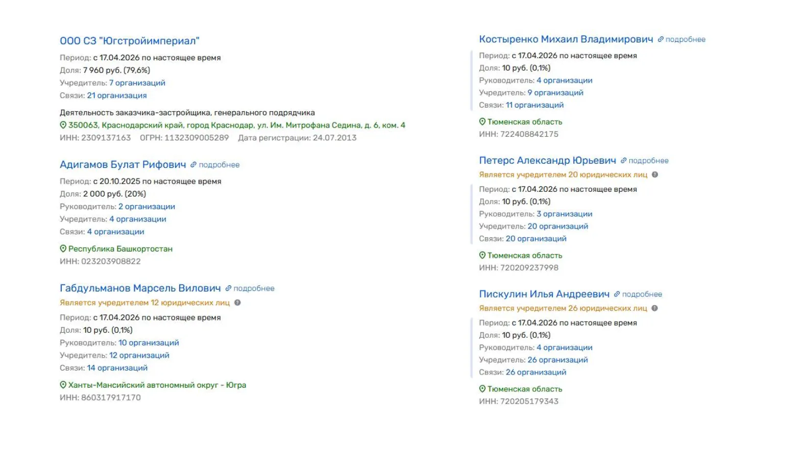 Речь идёт о «СЗ Урал», в числе учредителей которого также значатся представители «Творчество» — Илья Пискулин, Марсель Габдульманов, Александр Петерс и Михаил Костыренко.