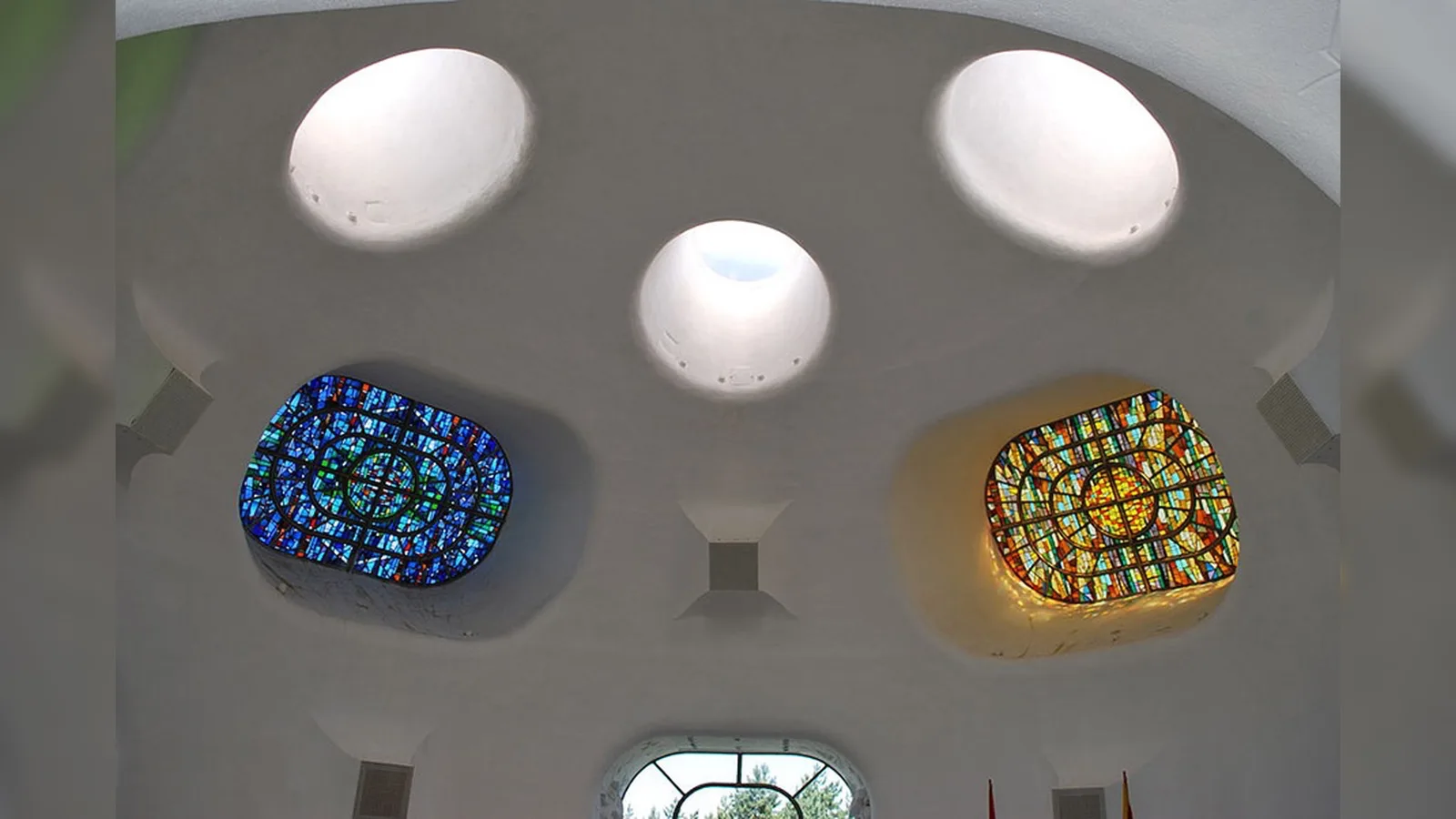 Сооружение напоминает ракету или антенну. Архитектура вызвала много споров. Здание выполнено из металла. Вертикальные формы создают эффект движения. Интерьер разделен на несколько конфессиональных пространств. Это редкий пример универсальной религиозной архитектуры. Объект стал символом академии, его образ ассоциируется с технологией и будущим. Здание активно используется. И является знаковым примером модернизма.