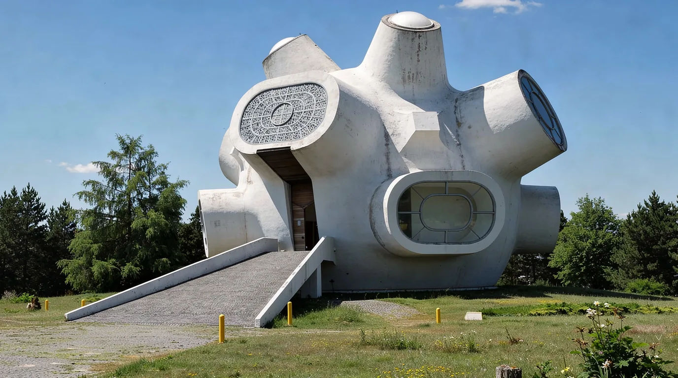 Этот мемориальный комплекс выглядит как инопланетная капсула или энергетическое ядро. Он был открыт в 1970-х годах и посвящен важным историческим событиям региона. Архитекторы Джордан Грабуловски и Искра Грабуловска создали по-настоящему уникальный образ. Белоснежная форма с выступающими элементами напоминает органическую структуру. Внутри находится мемориальное пространство с символическим наполнением. Здание воспринимается скорее как арт-объект, чем как традиционный памятник. Его образ даже использовался на национальной валюте. Материалы и формы подчеркивают идею вечности и памяти. Комплекс органично вписан в природный ландшафт. Это один из самых узнаваемых памятников Балкан.