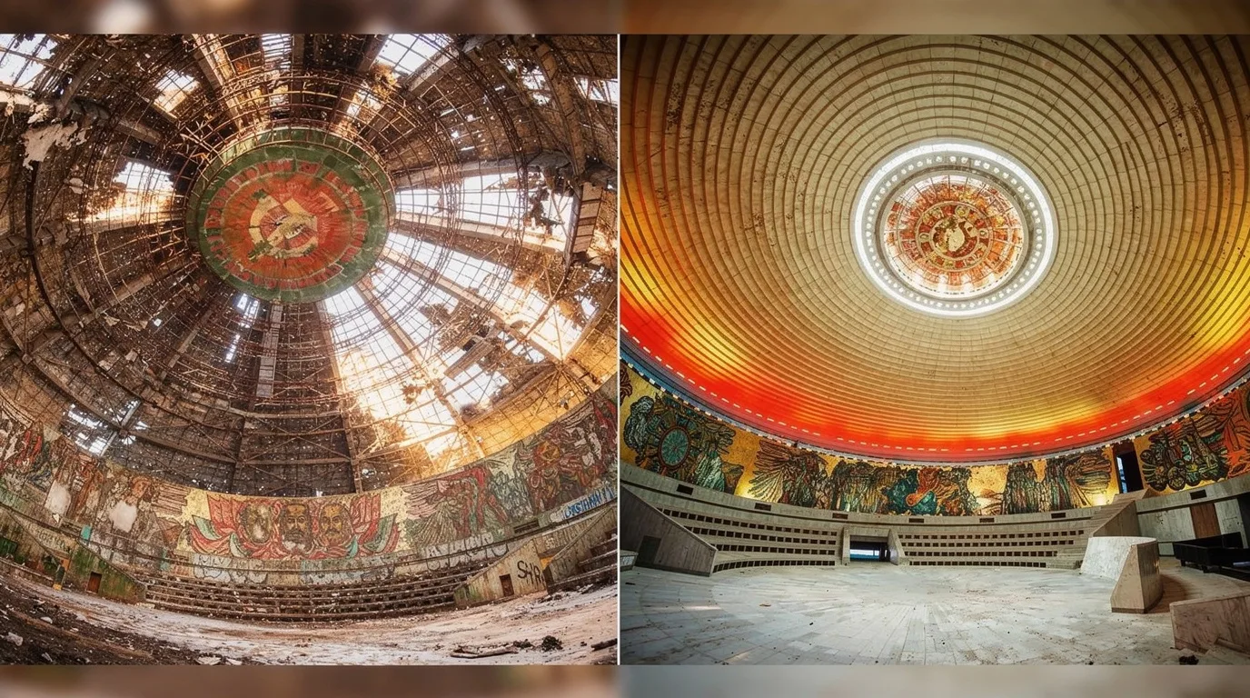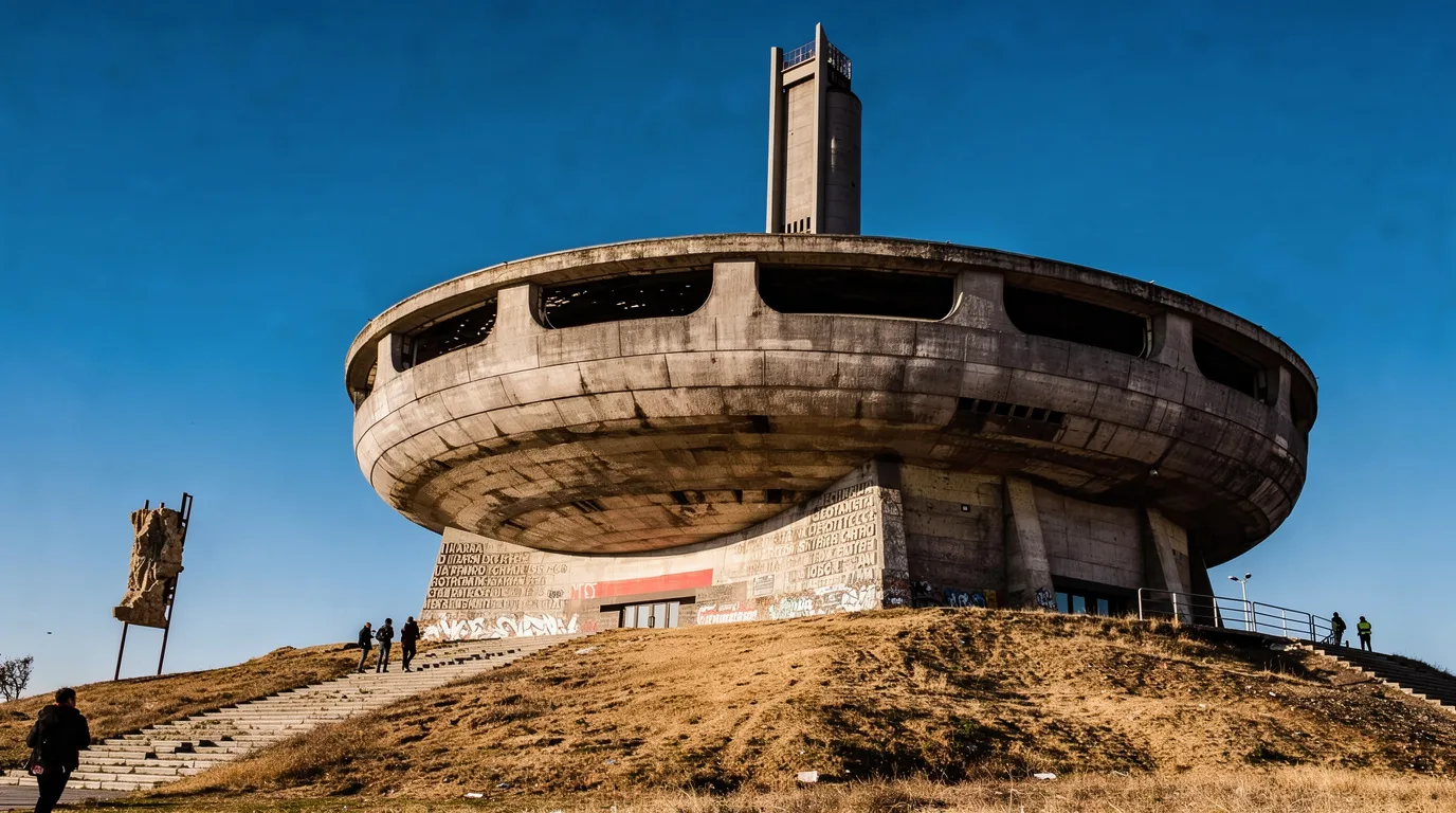 Сооружение напоминает приземлившуюся летающую тарелку. Проект архитектора Георгия Стоилова претерпел значительные изменения. Итоговый вариант стал символом эпохи. Внутри находились мозаики и масштабные интерьеры. После смены политической системы здание оказалось заброшенным. Сегодня оно частично разрушено, но продолжает привлекать туристов. Архитектура сочетает бетон и футуризм. Объект активно обсуждается в профессиональной среде. Планируется его восстановление. Это один из самых известных «космических» памятников Восточной Европы.