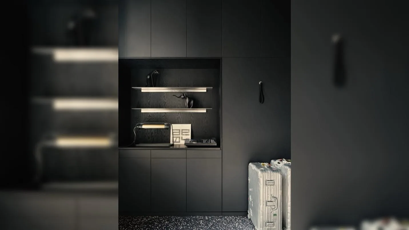 Studio Karhard традиционно уделяет особое внимание материалам как основному инструменту проектирования. В данном случае им удалось создать сложный диалог между индустриальной эстетикой и домашним уютом. Грубые поверхности не подавляют, а напротив — подчеркивают мягкость текстиля и глубину световых сценариев. Это не просто стилистический прием, а продуманная система взаимодействия фактур. Не менее важным фактором стала вовлеченность заказчиков. Американская пара, для которой создавался интерьер, изначально была настроена на эксперимент и предоставила архитекторам максимальную свободу. По словам авторов проекта, процесс напоминал динамичную игру — идеи обсуждались, трансформировались и дополнялись в постоянном диалоге. Именно такая открытость позволила реализовать нестандартные решения без компромиссов.