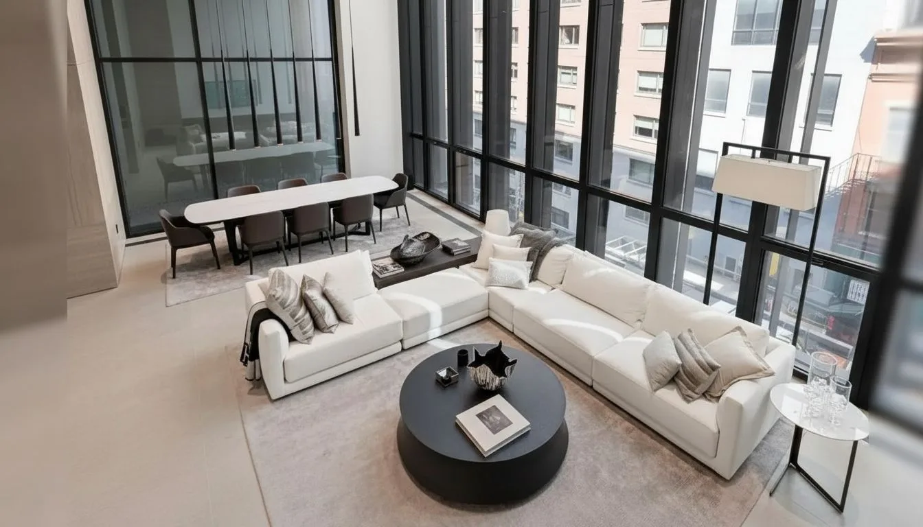 Типичная квартира Нью-Йорка — это пространство, где каждый квадратный метр на вес золота. В старых домах — высокие потолки, кирпичные стены, паркет и характерные детали эпохи. В новых — открытая планировка, стеклянные фасады, минимализм и меньше звукоизоляции. Средняя площадь: около 74 м², но на Манхэттене встречаются студии 35–50 м². Типовая планировка: гостиная, спальня, кухня, ванная, часто без балкона.
