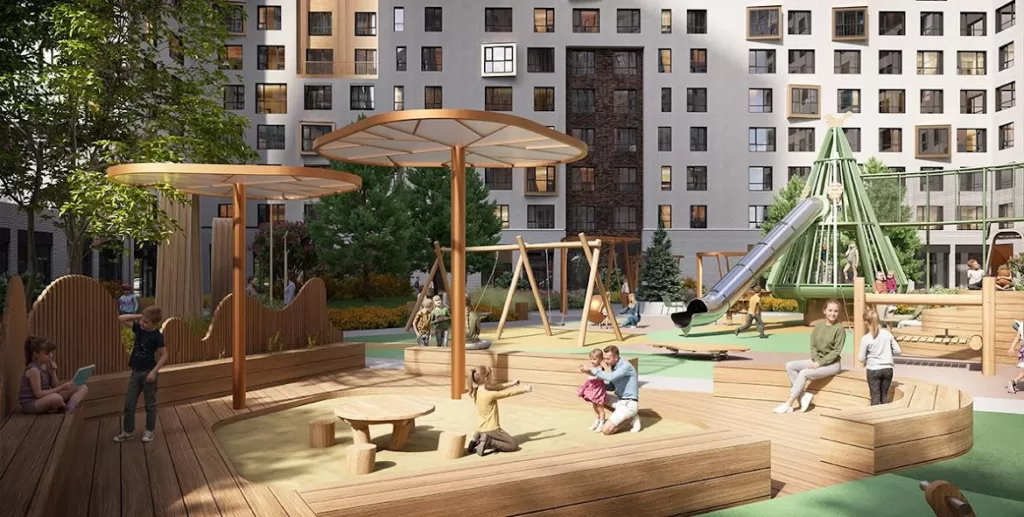В ближайшие два года в Мытищах в рамках жилого проекта «Страна.Парковая» будут построены новые дома с мини-парком цветущих и луговых трав, хвойными зонами и мостом, напоминающим акведук, — канонический символ Мытищ. Между секциями расположатся детские зоны для игр с каруселями и лабиринтами, спортивные площадки и тренажеры, а также амфитеатр, гамаки, шезлонги и скамейки под теневыми навесами. В окрестностях ЖК расположено три школы, пять детских садов, несколько поликлиник и множество досуговых локаций — все самое важное для комфортной жизни. Еще одну школу и детский сад «Страна Девелопмент» возведет своими силами на территории микрорайона.