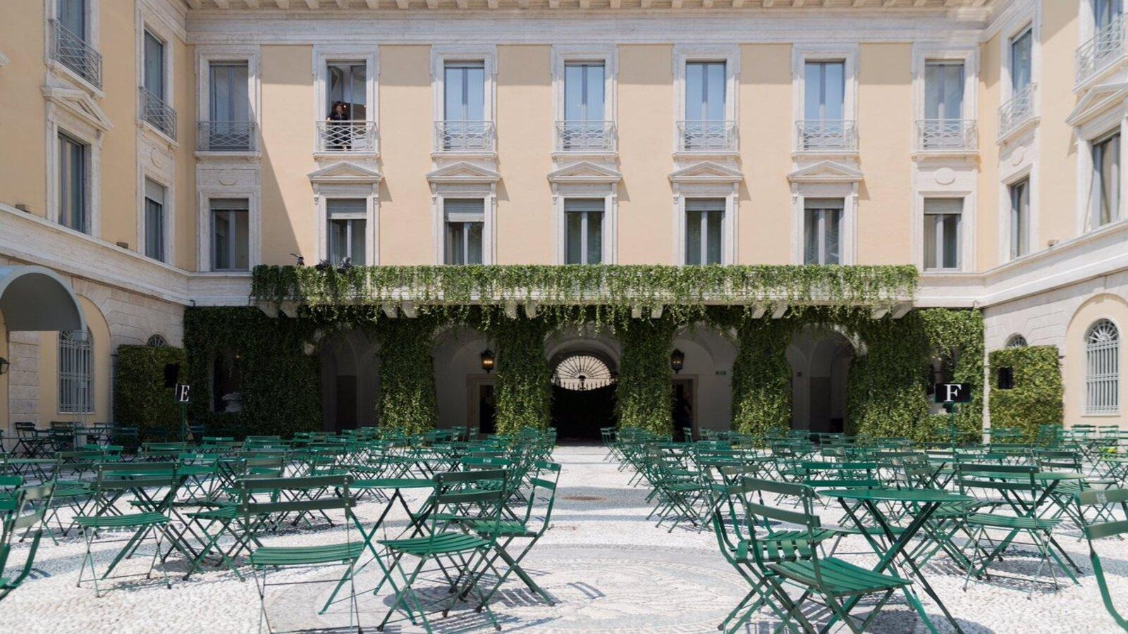 Отдельного внимания заслуживает внутренний двор. Здесь расположен открытый бассейн, выложенный мозаикой с добавлением 24-каратного золота, а центральным мотивом декоративного панно стала Медуза — эмблема модного дома Versace. Сегодня на этом месте сервируют завтраки для гостей отеля, но атмосфера роскоши и драматизма по-прежнему ощущается в каждом элементе.