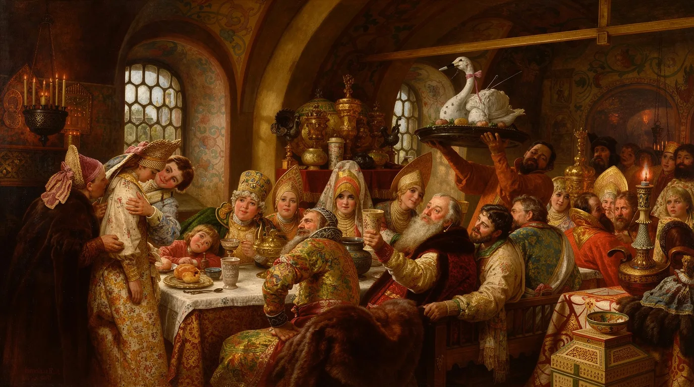 Особое место занимали праздники. Боярские застолья были масштабными и многолюдными. При этом мужчины и женщины часто проводили время раздельно, объединяясь лишь в ключевые моменты торжества. Такие события сопровождались обилием еды, напитков и развлечений.