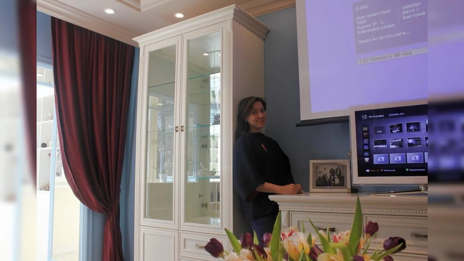 Одной из задач было создать достаточное количество мест хранения, не загромождая пространство. Для этого использованы встроенные шкафы, закрытые системы хранения, стеклянные элементы для визуальной легкости. Особое внимание уделено размещению личных вещей и архивных материалов — они стали частью интерьера и одновременно выполняют декоративную функцию. Диван выбран раскладной, что позволяет использовать его как полноценное спальное место. Центральным элементом гостиной стала кинозона. В нее входят проектор, большой экран, удобная расстановка мебели. Техника интегрирована в интерьер так, чтобы не нарушать его визуальную целостность.