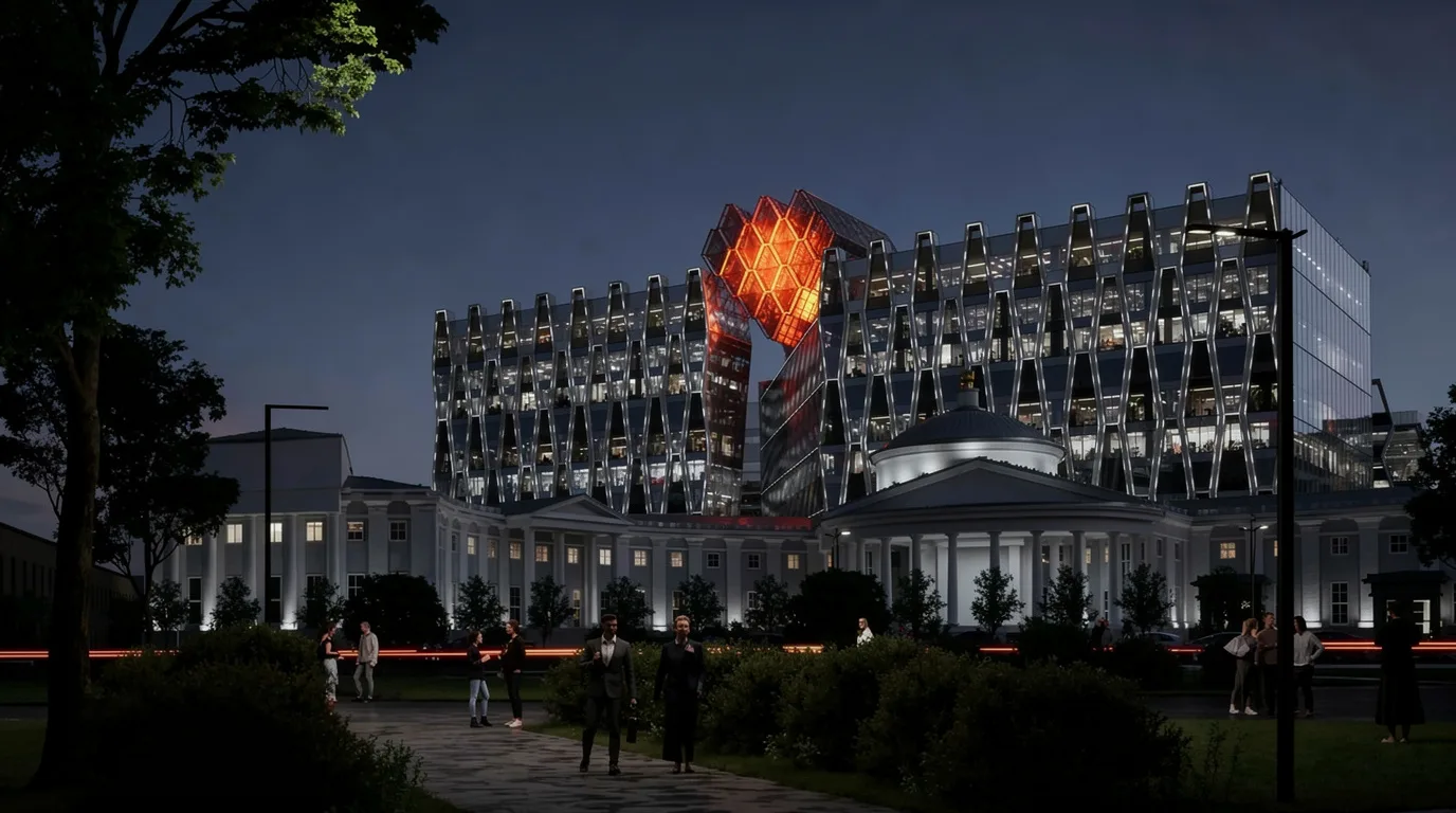 Проект задуман как выразительный архитектурный акцент, который усилит визуальную роль «Москва-Сити» в городской структуре. В основе концепции — скульптурная форма с мотивом «петли», благодаря которой здание будет выделяться на фоне существующей застройки делового центра.