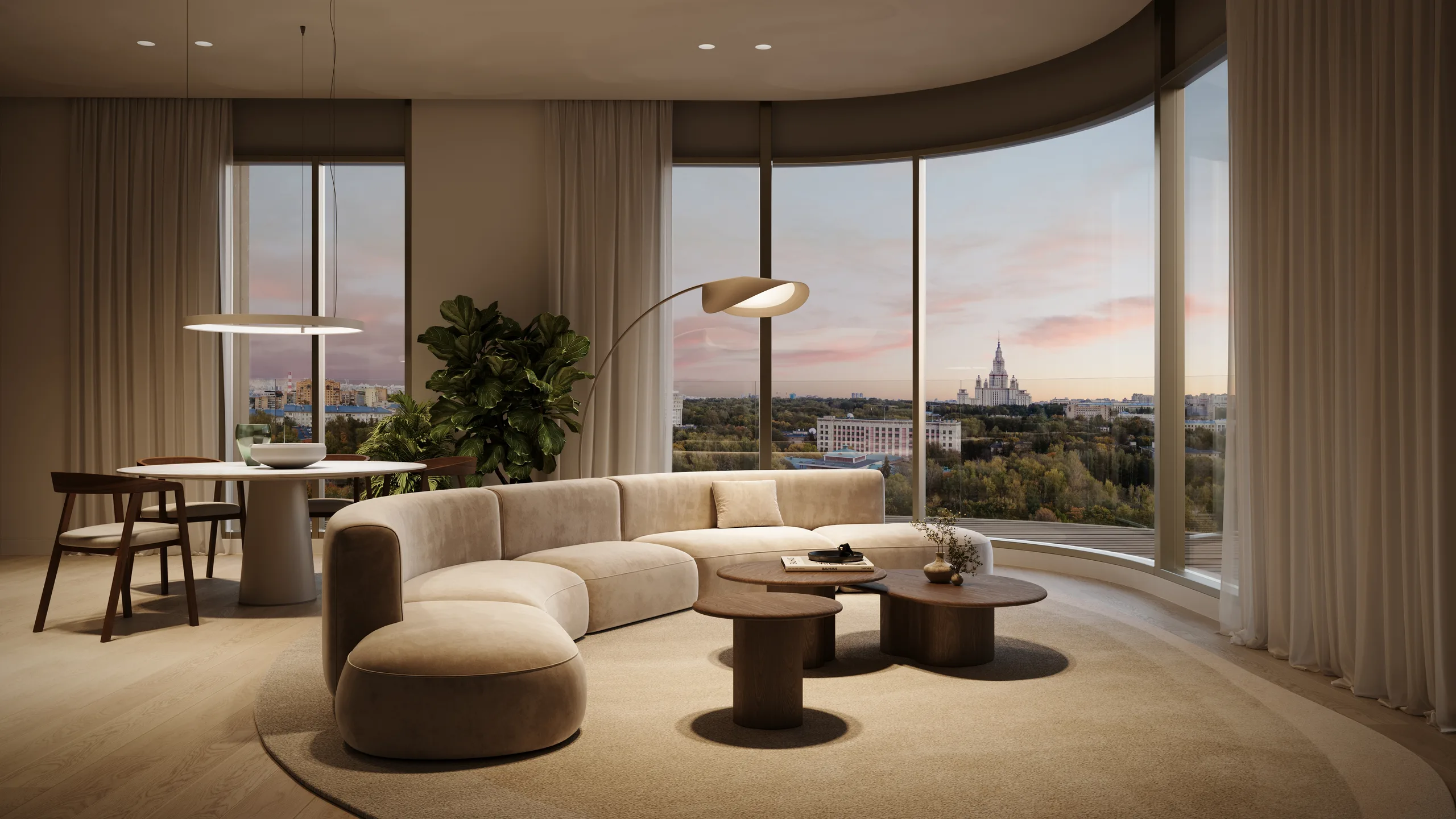 Пространство для тех, кто ищет вдохновение в тишине и архитектурной гармонии. Трехкомнатная резиденция площадью 133,8 квадратных метра с окнами на сторону величественного МГУ.