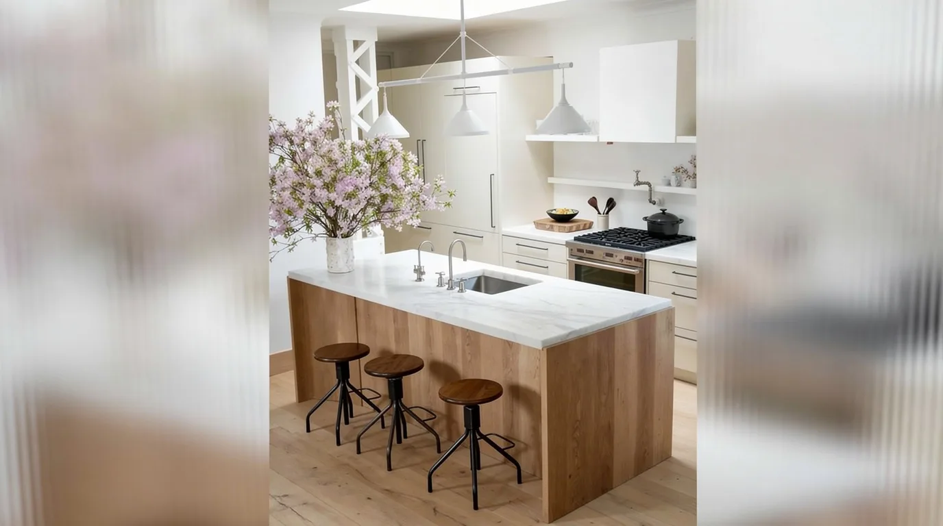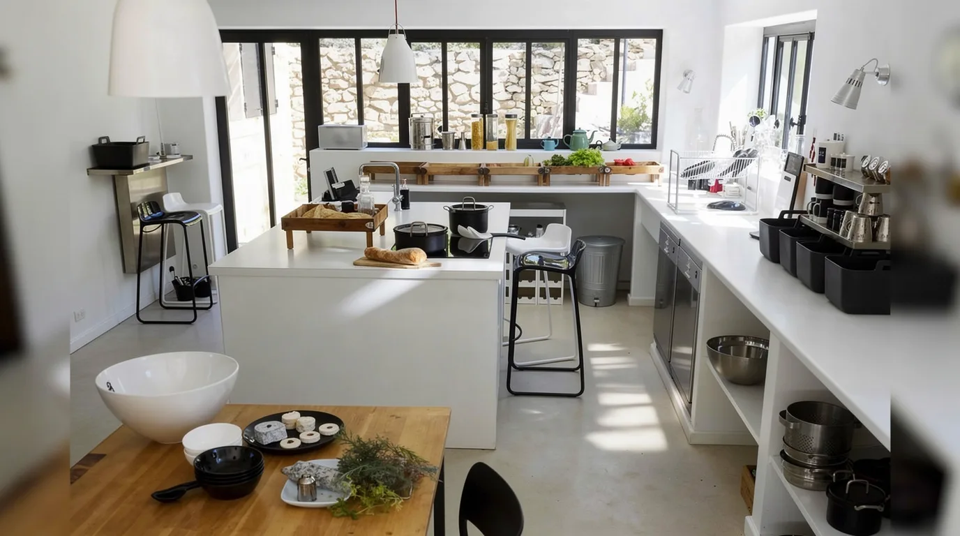 У Кендалл Дженнер кухня — это не только про готовку, но и про восстановление. Пространство оформлено в мягком, спокойном стиле, без лишнего визуального шума. Главная идея — создать место, где хочется проводить время.