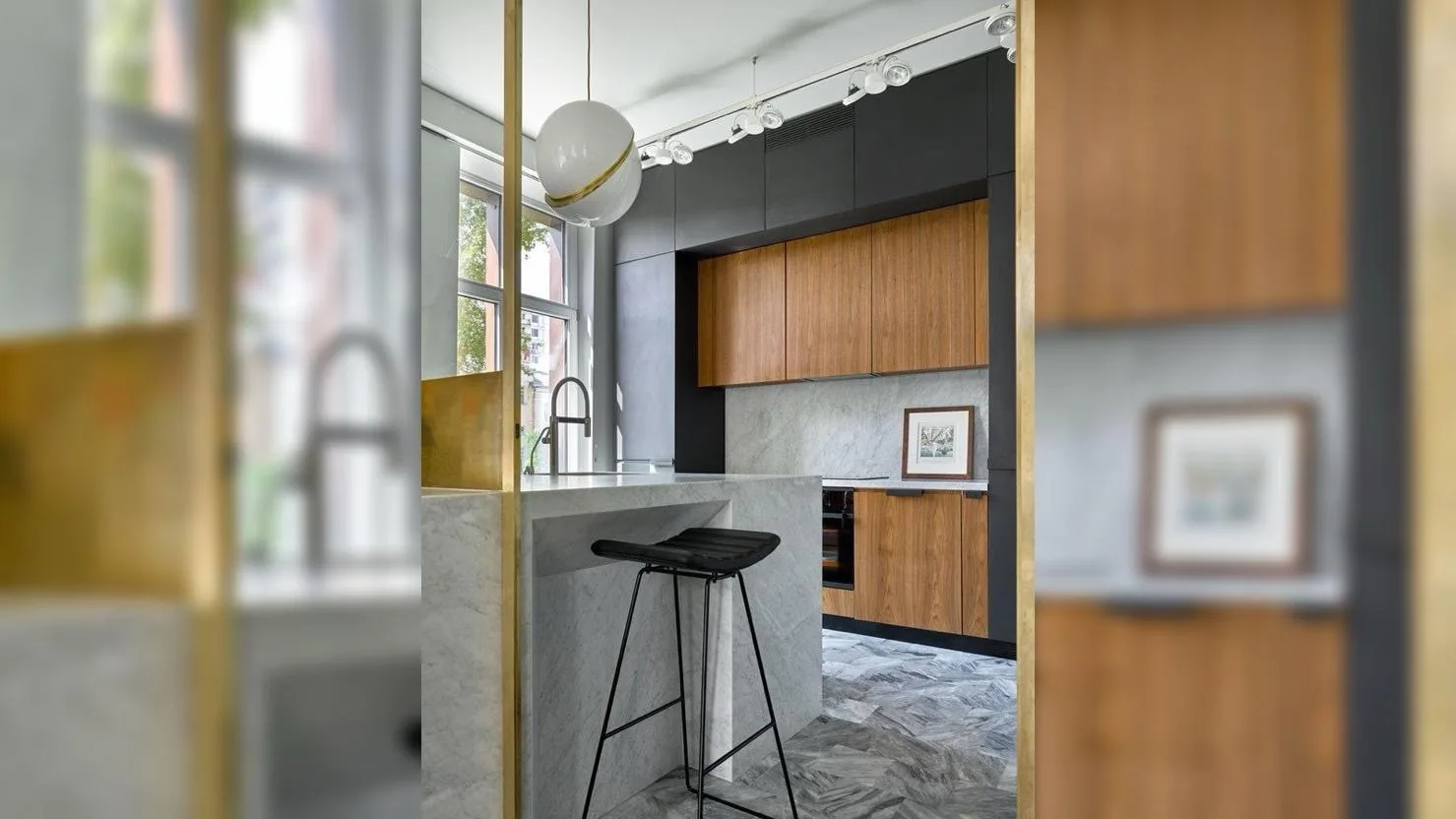 Музыкант Баста выбрал сдержанный и технологичный интерьер. Пространство разделено стеклянной перегородкой — решение, которое одновременно сохраняет визуальную легкость и защищает от запахов. Нейтральные цвета, лаконичные формы и отсутствие лишнего декора делают кухню частью общей архитектуры квартиры. Что важно: зонирование без утяжеления пространства, скрытые системы хранения, нейтральная цветовая гамма.