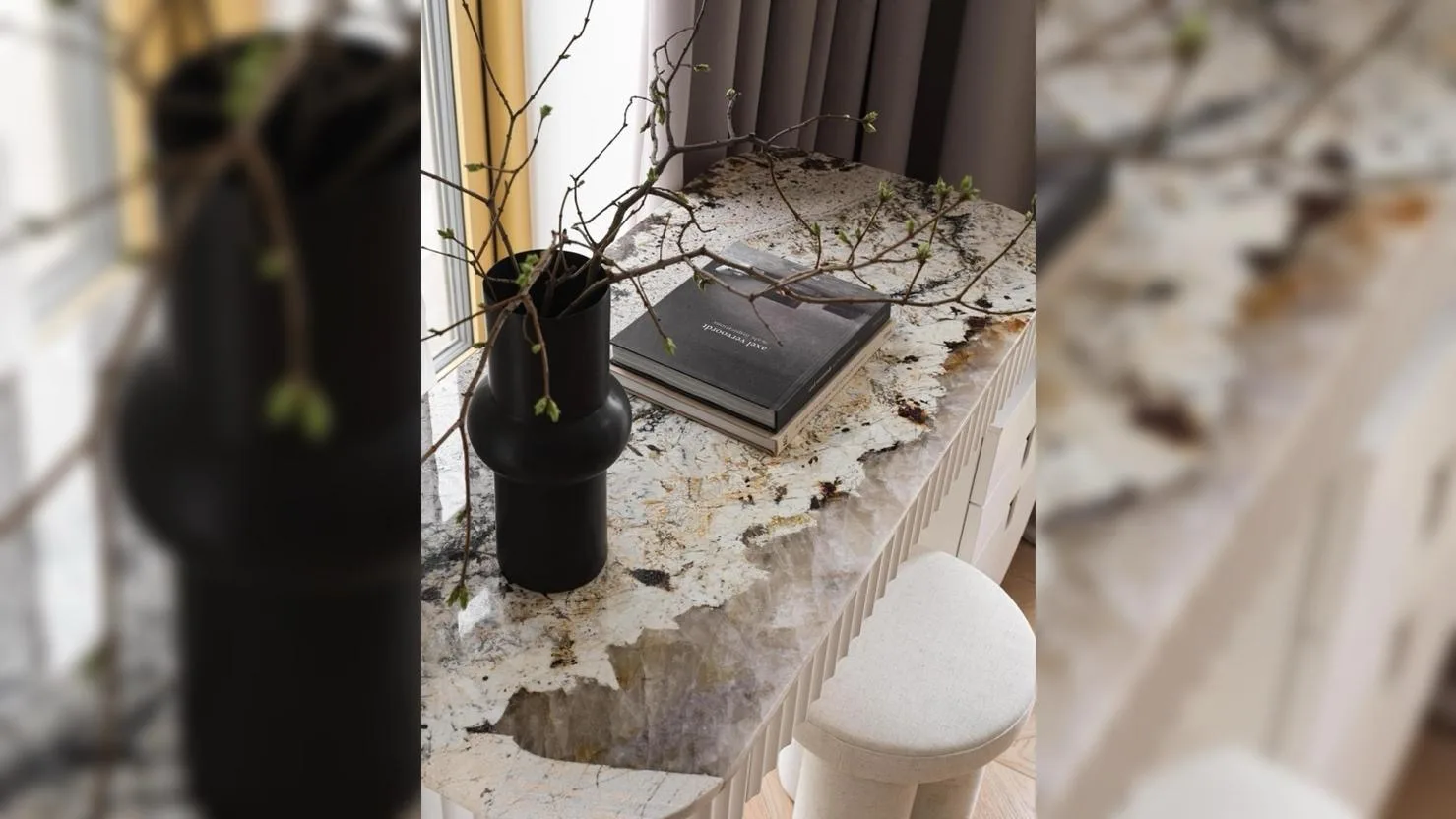 Важной частью проекта стала работа с деталями. Текстуры, отражающие поверхности, сочетание материалов — все это формирует многослойность интерьера. Здесь нет случайных элементов: каждый предмет либо поддерживает концепцию, либо выполняет функциональную роль.