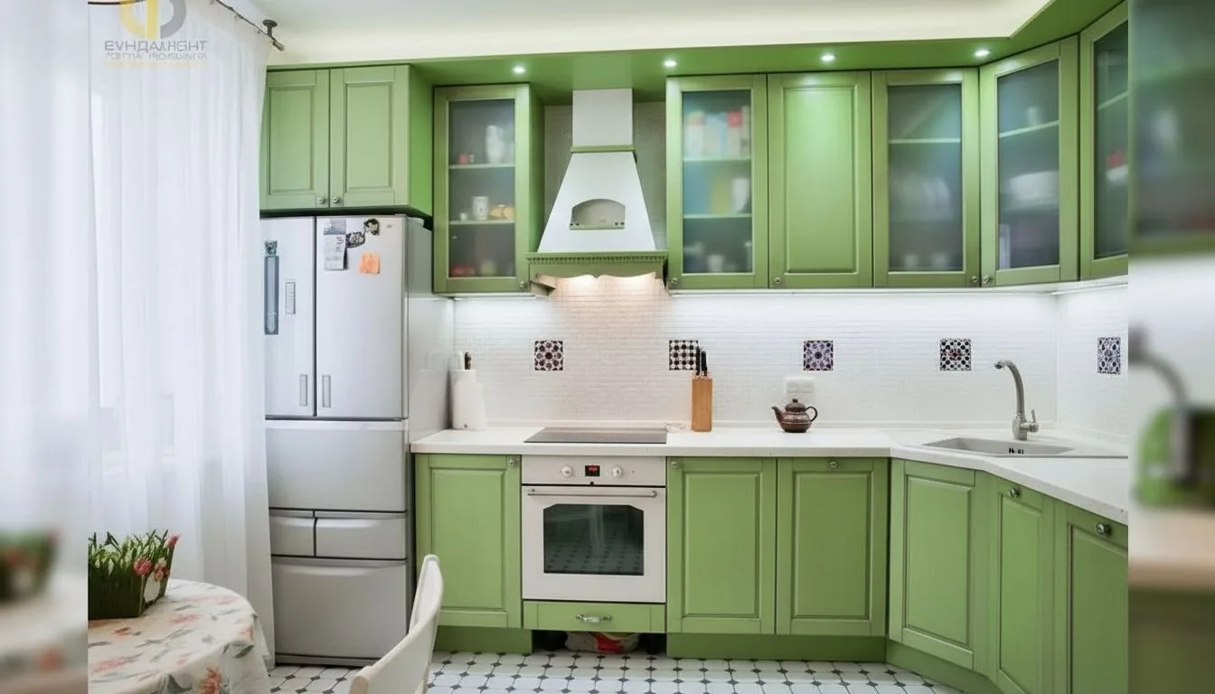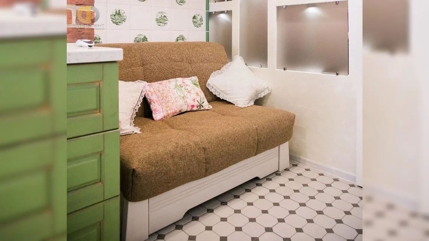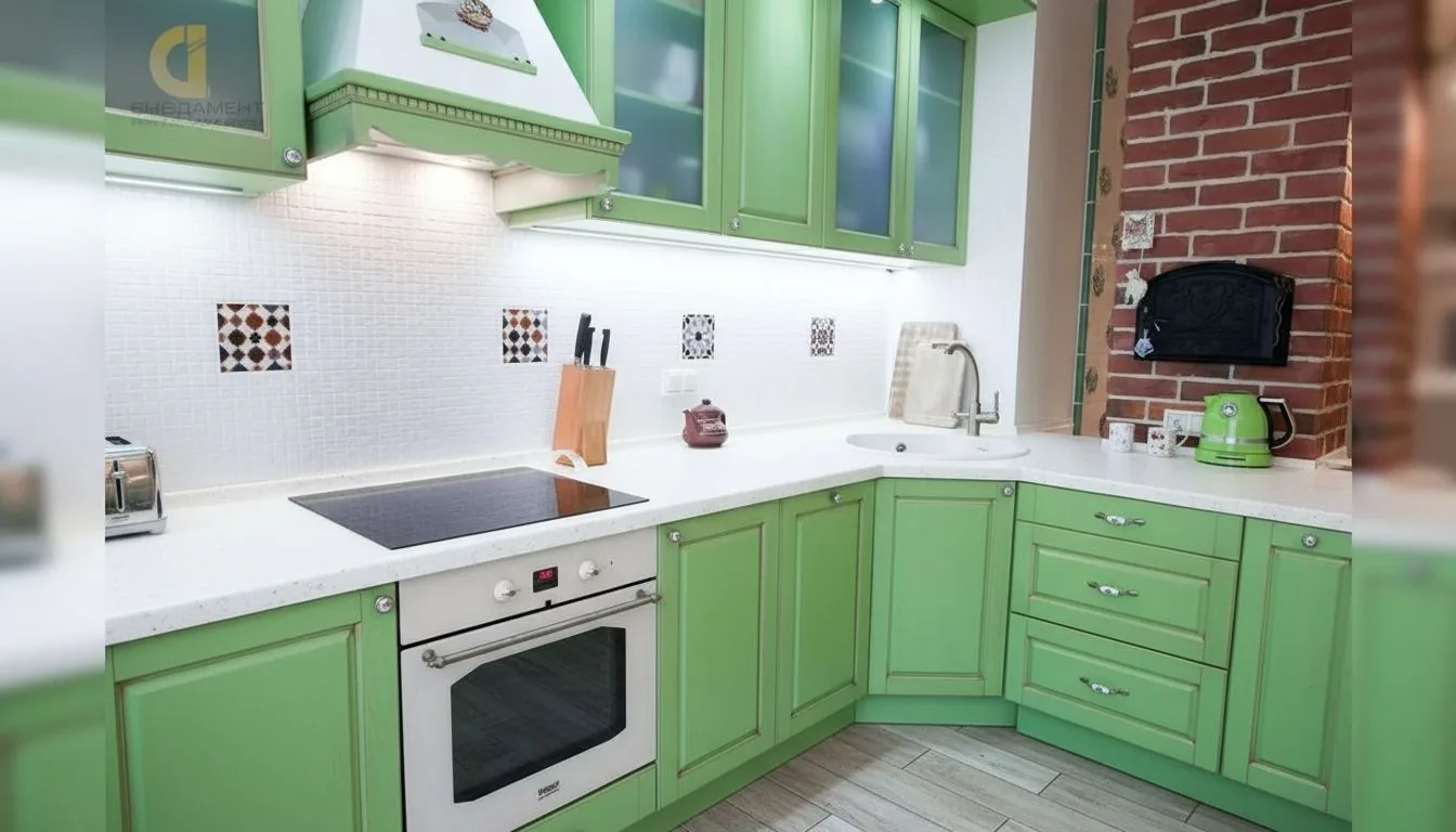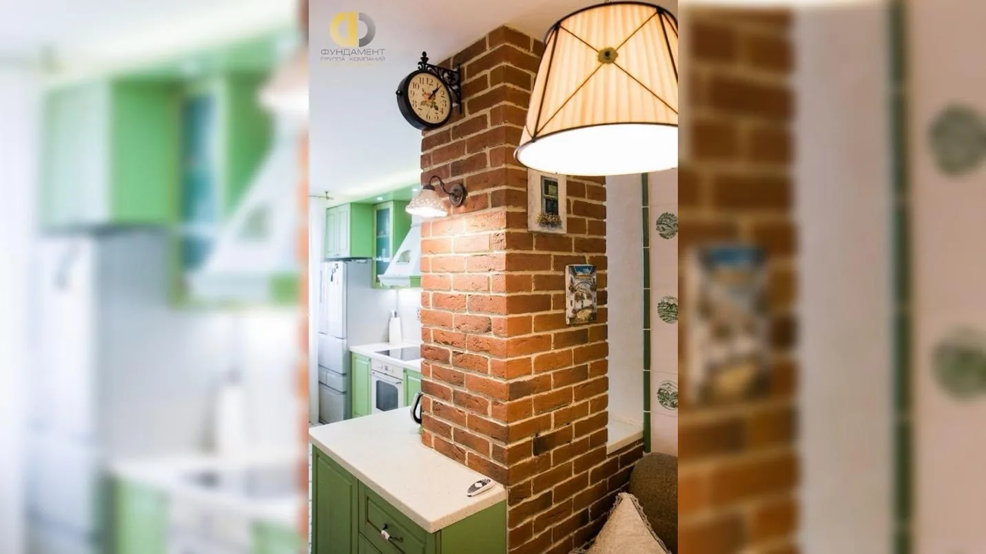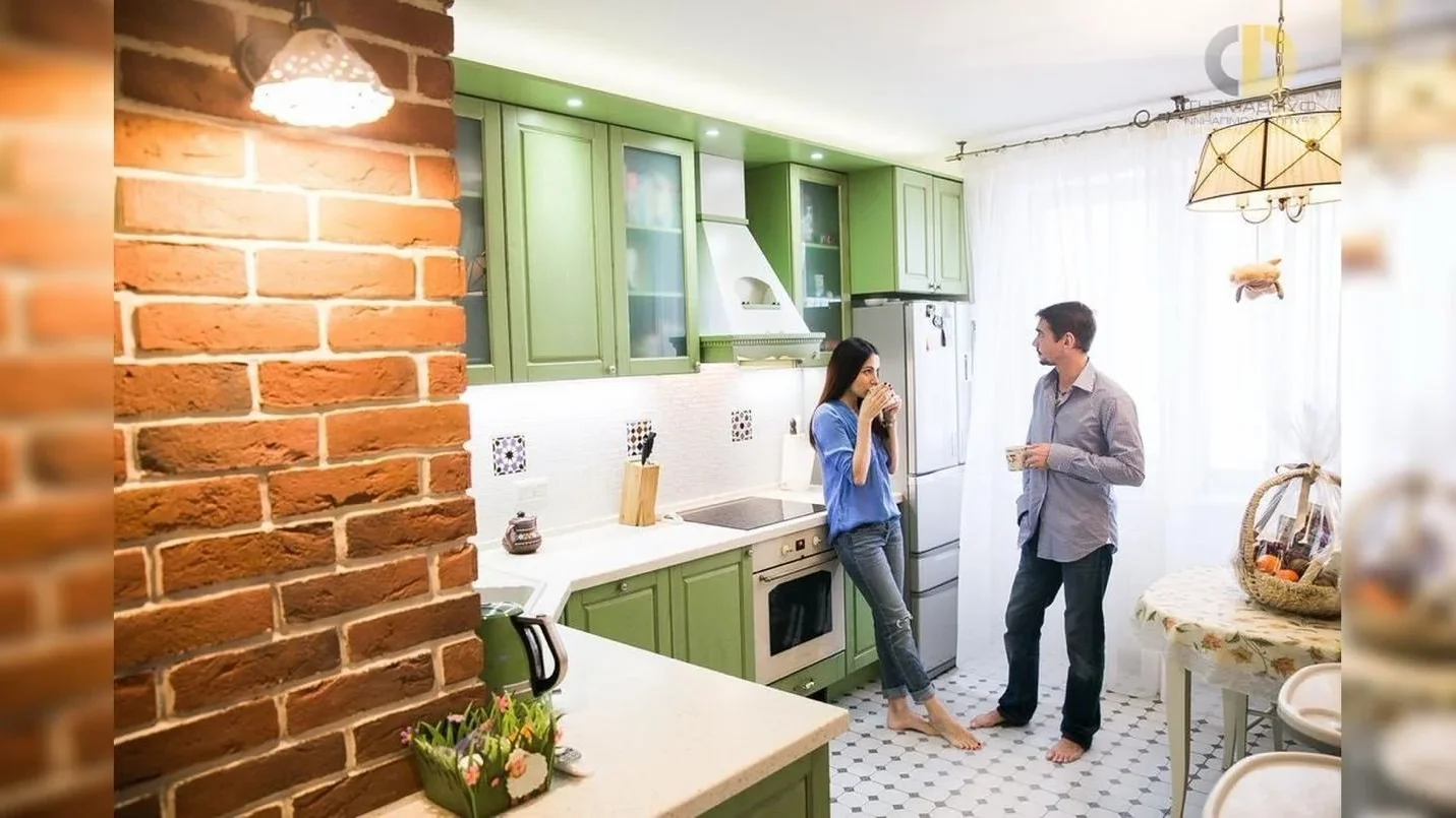Кухня стала центральным элементом квартиры и ярким примером того, как классический стиль может быть адаптирован под современные потребности. Интерьер построен на характерных чертах прованса: фасады мебели выполнены в мягком зеленом оттенке, присутствуют декоративные элементы, напоминающие ручную работу, а отделка стены под кирпич добавляет текстурности. Круглый стол с изящными ножками формирует уютную обеденную зону, а легкие светлые занавески и продуманное освещение усиливают ощущение легкости и уюта. Особое внимание уделено системе хранения, которая в семейной квартире играет критически важную роль. Пространство организовано так, чтобы каждая вещь имела свое место, при этом визуально интерьер остается легким и не перегруженным. Это достигается за счет сочетания закрытых и открытых модулей, а также грамотного распределения мебели.