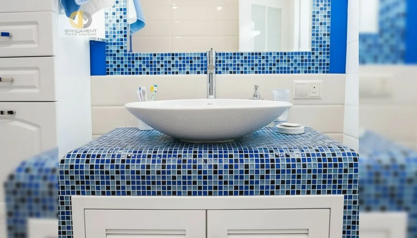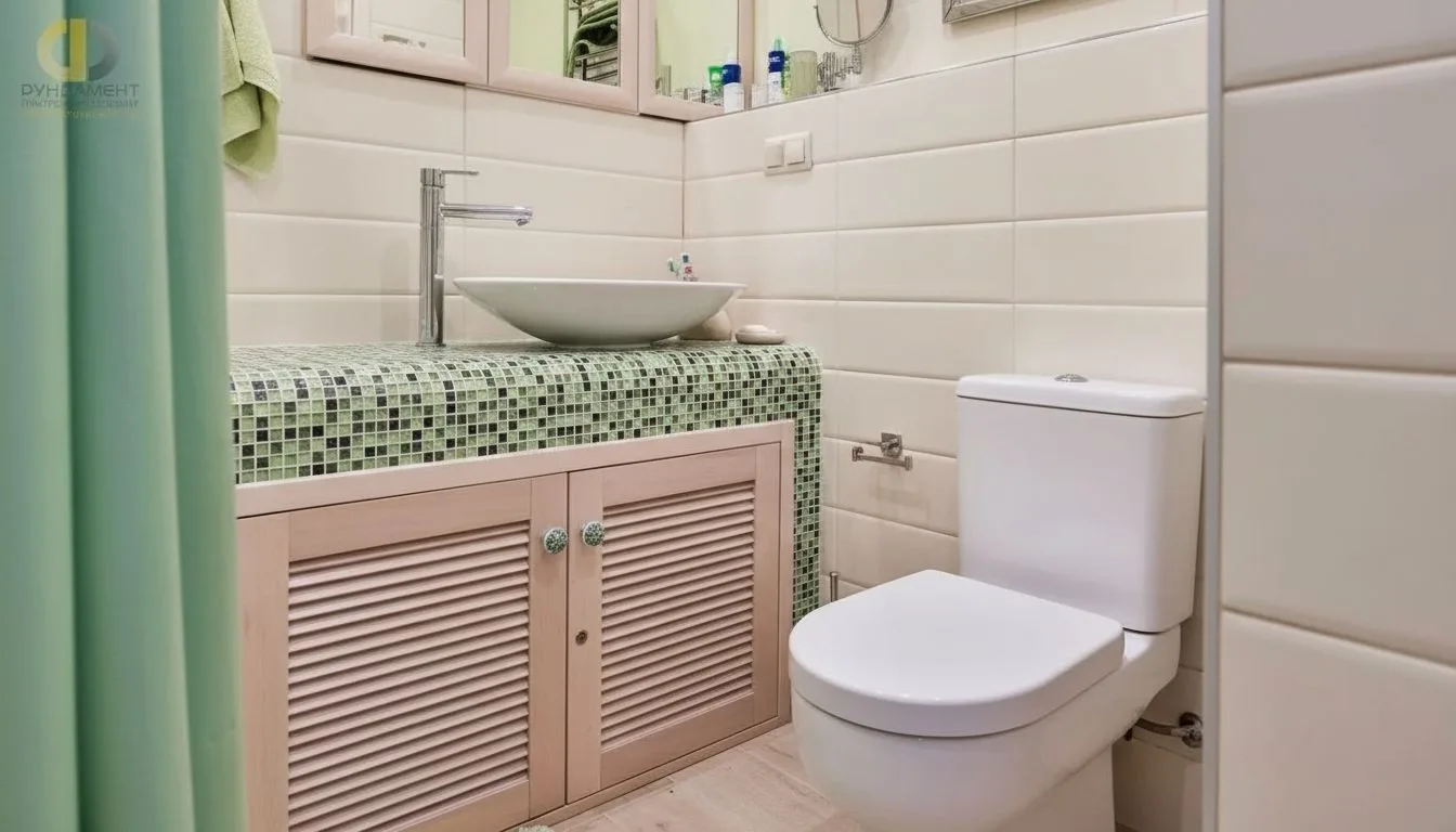 Ванная комната демонстрирует другой подход — здесь использована более живая цветовая палитра с элементами средиземноморской эстетики. Сочетание бежевых, розоватых и фисташковых оттенков формирует светлое и позитивное пространство. Мозаика добавляет декоративности, а продуманная компоновка делает помещение не только красивым, но и практичным. Дополнительный санузел выполнен с акцентами в голубых тонах, что создает ассоциации с морем и отдыхом. Этот прием не случаен: владельцы вдохновлялись атмосферой южных стран, в частности Испании, где они проводили время ранее. В результате интерьер приобретает эмоциональную глубину, становясь отражением личного опыта и воспоминаний.