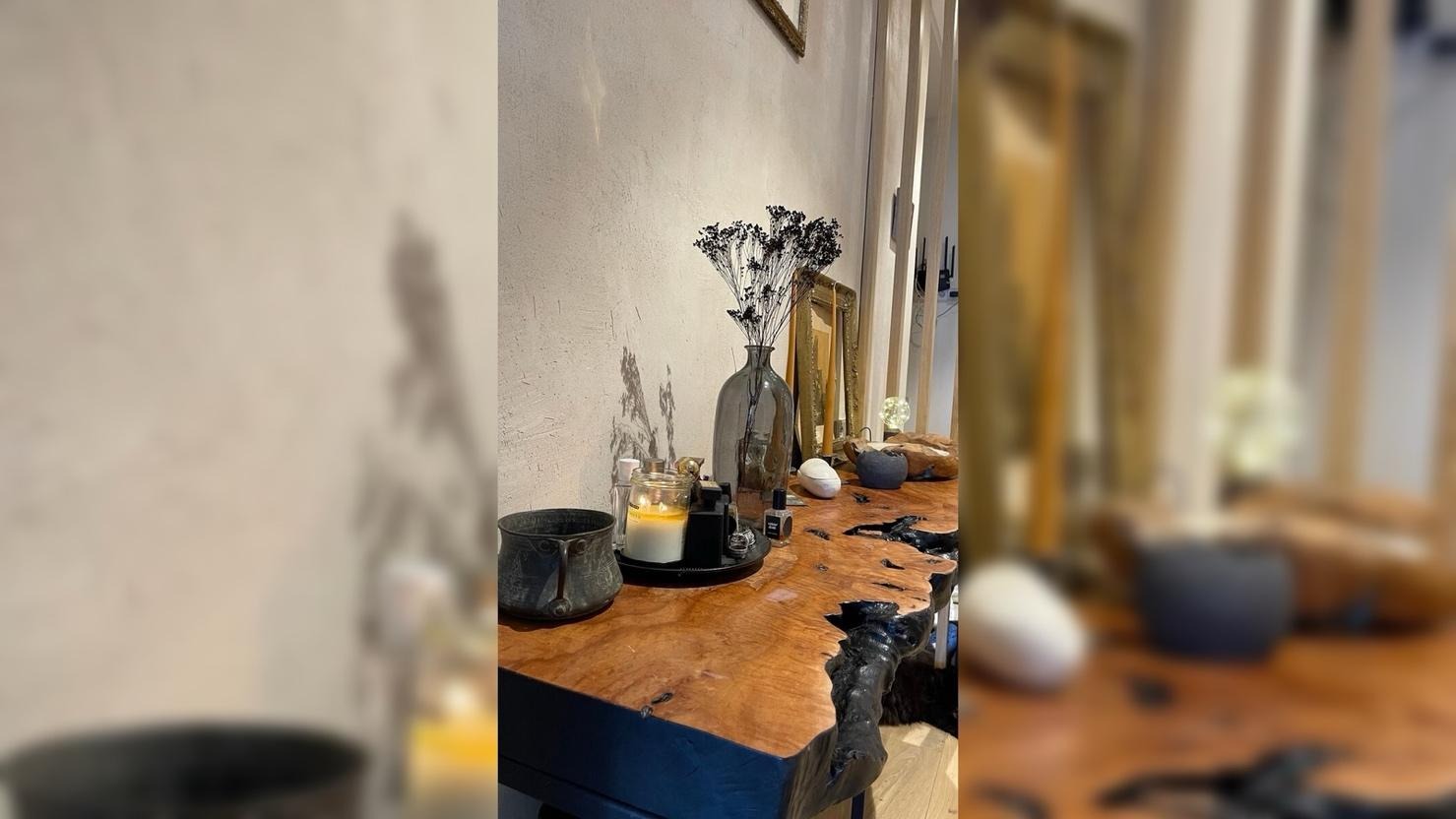 В квартире есть большой диван, напоминающий песчаные дюны, — его изготовили на заказ. Катя признаётся, что здесь она поняла: пения уже мало, и захотела рисовать, лепить из глины, создавать чашки и картины.