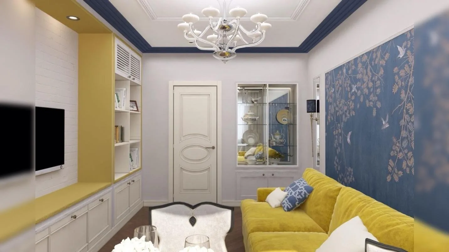 После завершения ремонта пространство полностью преобразилось. В основе цветовой концепции лежит сочетание синей лазури, оттенков шартрез и темного древесного пола. Эти цвета формируют спокойную, но не скучную палитру, которая визуально расширяет пространство и делает его более светлым. Белая мебель усиливает этот эффект, добавляя интерьеру легкости и чистоты.