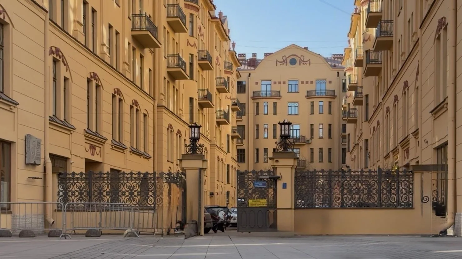 Речь идет о трехкомнатной квартире в доме №23 — здании с историей, архитектурным характером и редкой для мегаполиса атмосферой уединения. Этот дом, возведенный в 1911 году для Петербургской купеческой управы, представляет собой образец продуманной дореволюционной застройки. Его ключевая особенность — глубокий двор-курдонер, архитектурный прием, который создает ощущение защищенного пространства внутри шумного центра. Именно благодаря этому решению уже на подходе к подъезду возникает контраст: за пределами — ритм большого города, внутри — почти камерная тишина.