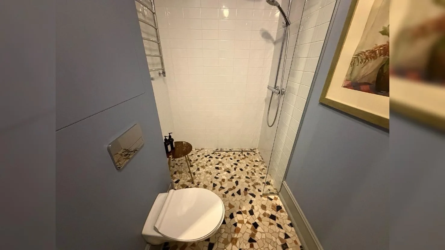Дополнительный санузел расположен ближе к кухне и выполняет вспомогательную функцию. Он оформлен проще, но полностью соответствует своей задаче — обеспечивать комфорт для гостей или членов семьи.