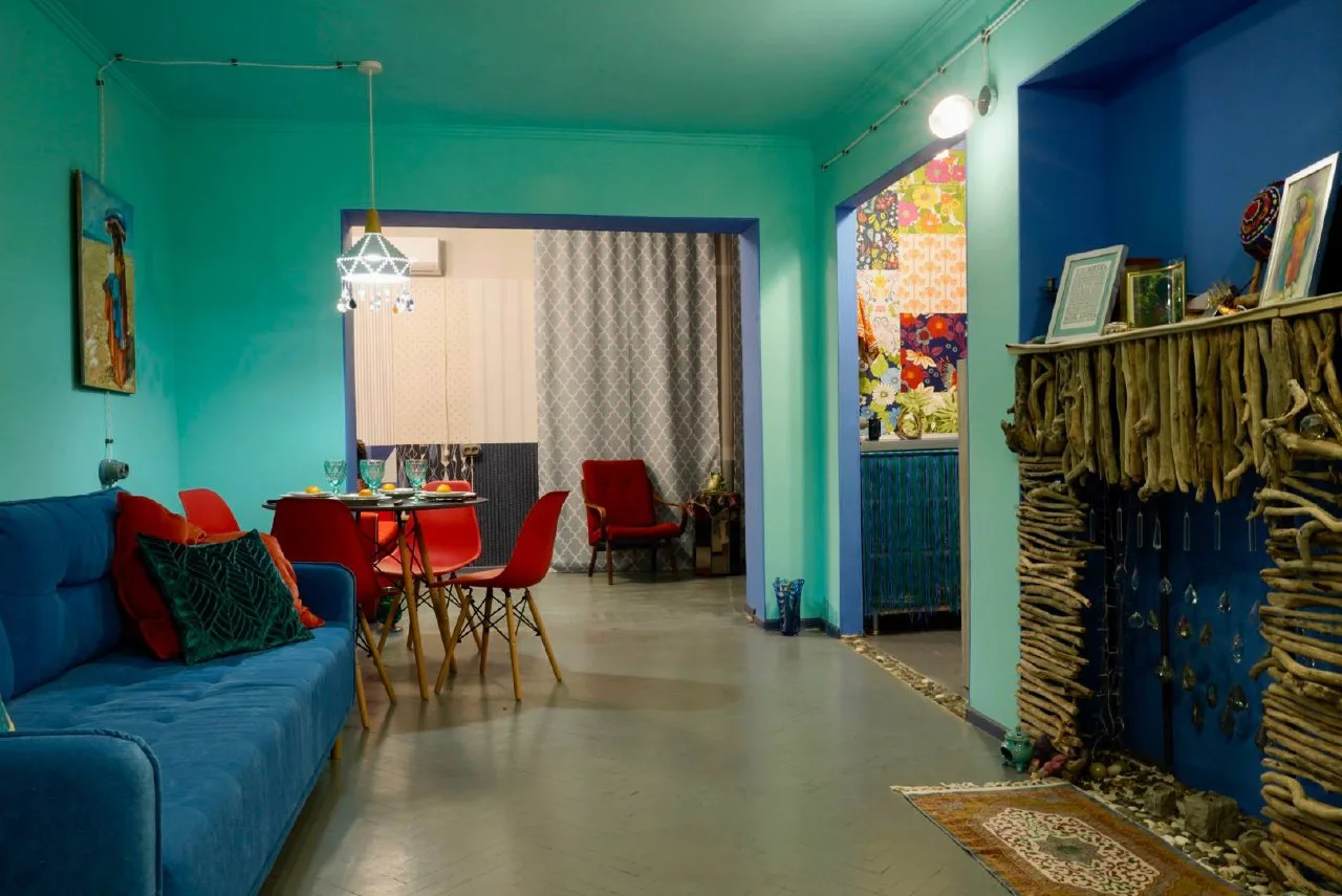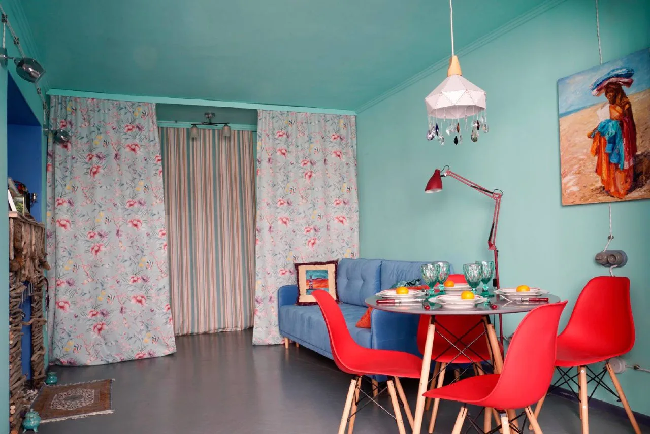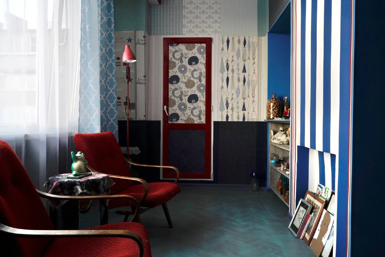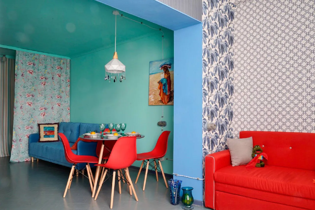 Пэчворк из обоев, цветные потолки и галька в душе — реальный кейс квартиры без миллионного бюджета.