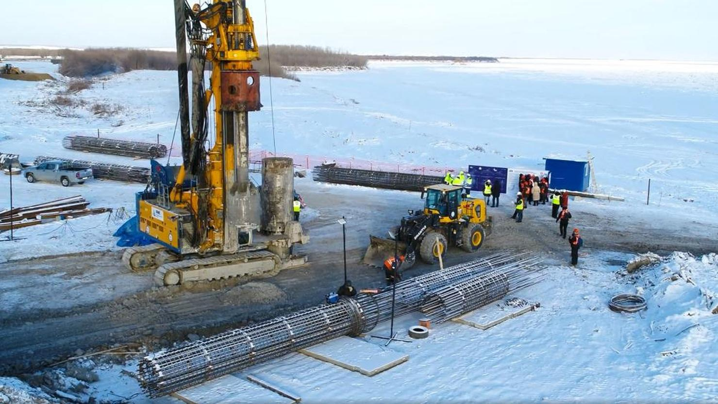 На обоих берегах Лены ведутся активные строительные работы по возведению опор Ленского моста. Установка буронабивных свай (до 40 метров в высоту), сварка арматурных каркасов — ключевые этапы подготовки к реализации проекта. На правобережье созданы необходимые технологические площадки, включая бетонный завод и подъездные пути.