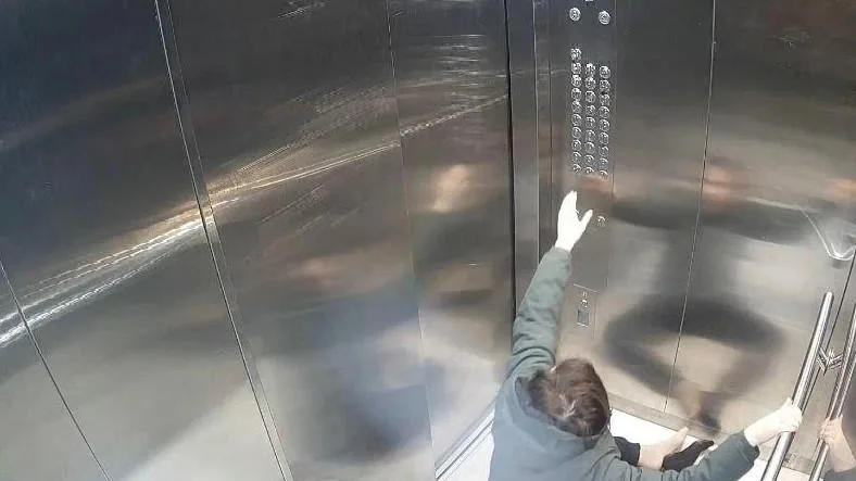 Камера в кабине зафиксировала момент, который мог закончиться трагедией: мужчина с тяжелым грузом заходил в лифт, когда кабина с открытой дверью резко поехала вверх. В последний момент он успел выпасть обратно на лестничную площадку, избежав зажатия между кабиной и стеной.